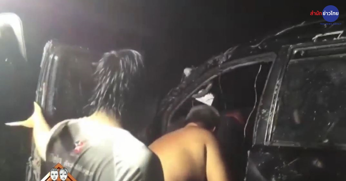 ที่เกิดเหตุพบรถยนต์โตโยต้า ฟอร์จูนเนอร์ สีดำ หมายเลขทะเบียน ญน 4183 กรุงเทพมหานคร พลิกตะแคงอยู่ในคูน้ำ กู้ภัยเร่งช่วยเหลือนำคนเจ็บออกจากรถขึ้นมาปั๊มหัวใจ แต่สามารถช่วยชีวิตผู้บาดเจ็บไว้ได้ 3 ราย ประกอบด้วย น.ส.สุกัญญา สารพันโชว์ติ คนขับรถ น.ส.นิล แก่นจันทร์ อายุ 27 ปี และนายมนัสชัย อำไพ อายุ 24 ปี ส่วนอีก 4 ราย เสียชีวิต คือ น.ส.นิศากร สำราญสุข อายุ 40 ปี น.ส.เกวลิน หงส์ไกร อายุ 34 ปี นายสุภกรณ์ สมงาม อายุ 21 ปี และ น.ส.นันตพัชร์ ต้นตุลา อายุ 35 ปี