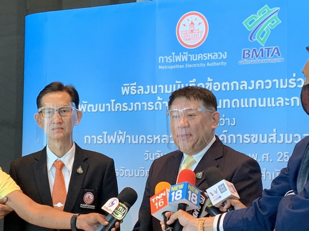 นายกีรพัฒน์ เจียมเศรษฐ์ ผู้ว่าการการไฟฟ้านครหลวง หรือ MEA และนายสันติ นำสินวิเชษฐชัย รองผู้ว่าการ MEA พร้อมด้วย นายสุระชัย เอี่ยมวชิรสกุล ผู้อำนวยการองค์การขนส่งมวลชนกรุงเทพ (ขสมก.) ร่วมลงนามบันทึกข้อตกลงความร่วมมือ การพัฒนาโครงการด้านพลังงานทดแทนและการอนุรักษ์พลังงาน โดยร่วมกันพัฒนาการผลิตไฟฟ้าจากพลังงานหมุนเวียน การวิจัยและพัฒนาต้นแบบ EV Charging Station สำหรับรถเมล์ไฟฟ้าสาธารณะ ตลอดจนร่วมกันศึกษาวิจัยและพัฒนาเพื่อเพิ่มประสิทธิภาพการใช้พลังงานไฟฟ้าและปรับลดปริมาณการใช้ไฟฟ้า ณ อาคารวัฒนวิภาส การไฟฟ้านครหลวง สำนักงานใหญ่ คลองเตย