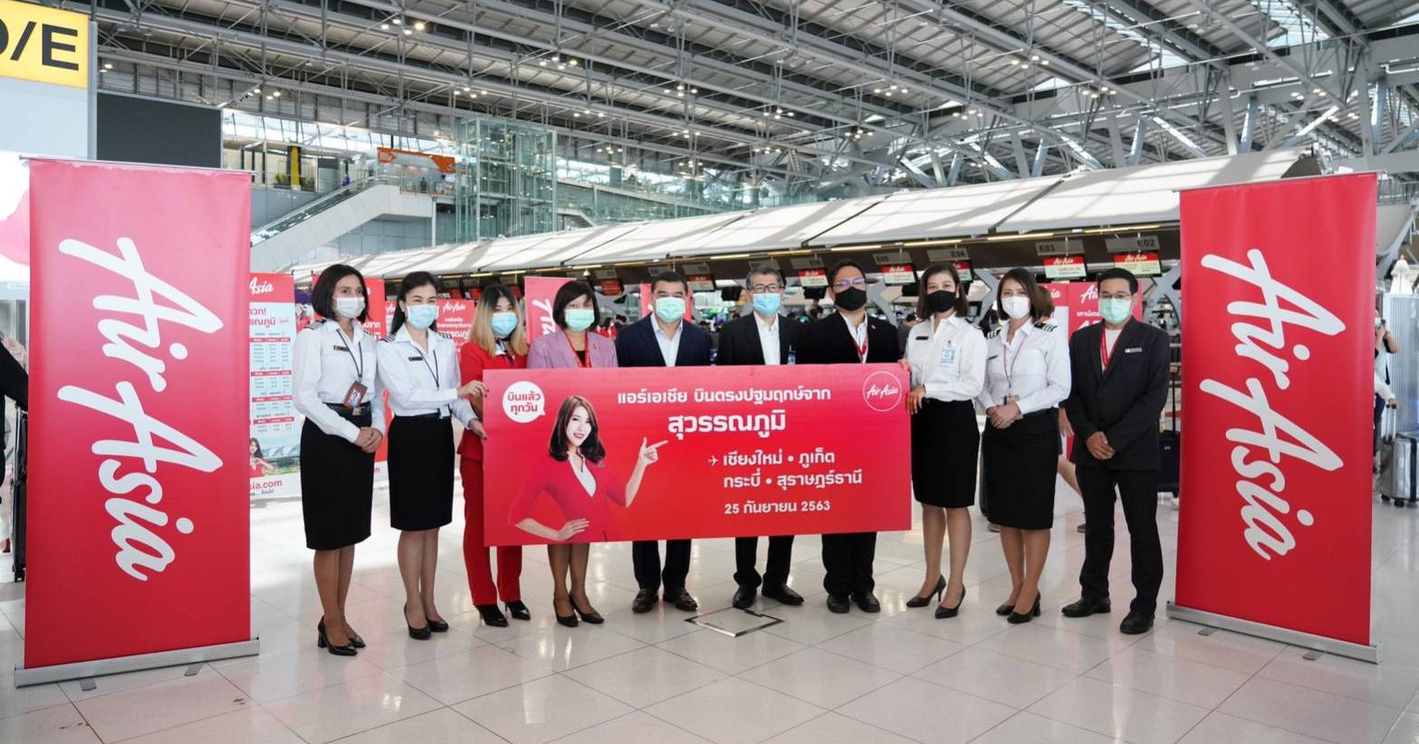 นายสันติสุข คล่องใช้ยา ประธานเจ้าหน้าที่บริหารสายการบินไทยแอร์เอเชีย เปิดเผยว่า แอร์เอเชียตอกย้ำการเป็นผู้นำ พร้อมเป็นสายการบินเดียวที่ให้บริการที่กรุงเทพฯ ทั้งท่าอากาศยานดอนเมืองเเละท่าอากาศยานสุวรรณภูมิ โดยเริ่มเปิดให้บริการบินปฐมฤกษ์ตรงจากท่าอากาศยานสุวรรณภูมิแล้วตั้งเเต่วันนี้ สู่ 4 เส้นทาง คือ เชียงใหม่ 5 เที่ยวบินต่อวัน ภูเก็ต 3 เที่ยวบินต่อวัน กระบี่ 2 เที่ยวบินต่อวัน เเละสุราษฎร์ธานี 2 เที่ยวบินต่อวัน โดยจัดพิธีต้อนรับอย่างเป็นกันเอง พร้อมตั้งเป้าเชื่อมต่อกับเที่ยวบินระหว่างประเทศในอนาคต สร้างโอกาสเเละกระตุ้นเศรษฐกิจการท่องเที่ยวโดยรวม