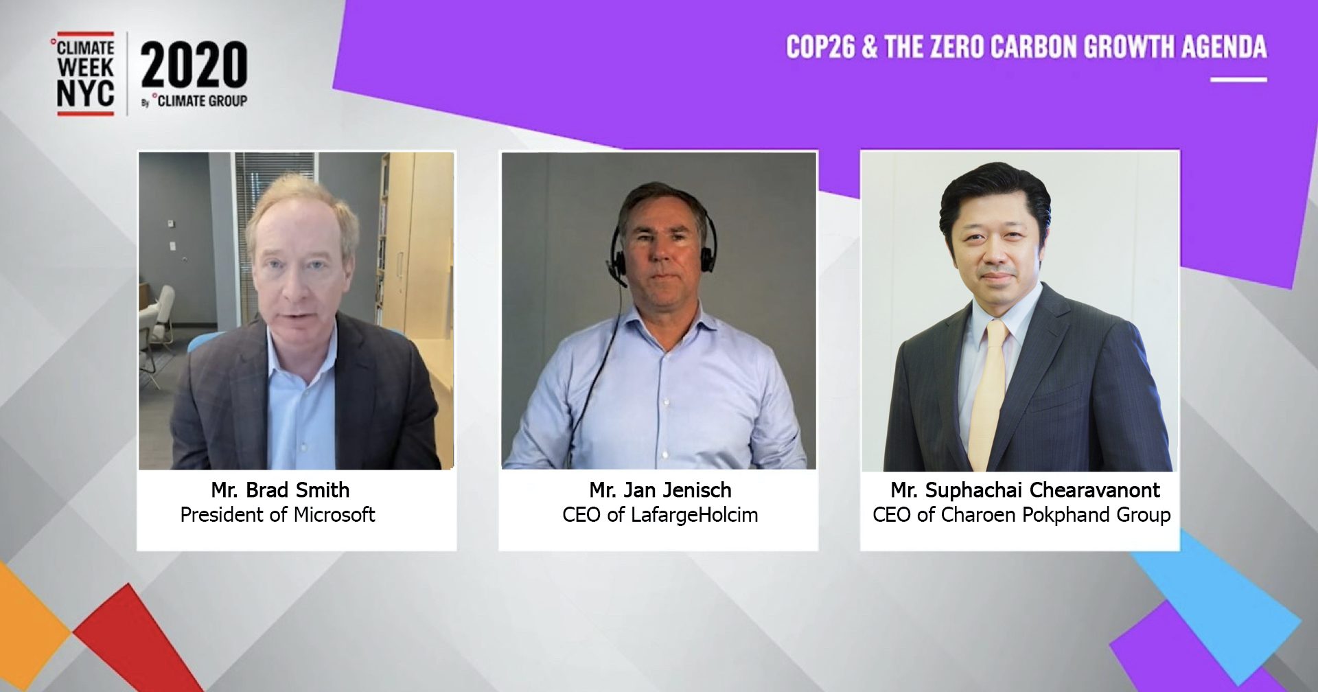 รายงานข่าวบนเว็บไซต์ของ UNFCCC ระบุด้วยว่า นายศุภชัย เจียรวนนท์ ประธานคณะผู้บริหาร เครือเจริญโภคภัณฑ์ ได้กล่าวว่าในฐานะกลุ่มบรรษัทผู้นำของเอเชียที่มีธุรกิจหลักด้านอาหารและการเกษตร เครือซีพีมีบทบาทในการลดการปล่อยก๊าซคาร์บอนไดออกไซด์ของภาคการเกษตร และส่งเสริมให้ผู้บริโภคเลือกรับประทานอาหารที่ยั่งยืนมากขึ้น ทั้งนี้เครือซีพีมีความมุ่งมั่นและมีเป้าหมายในการปล่อยก๊าซคาร์บอนไดออกไซด์สุทธิเป็นศูนย์ ภายในปี พ.ศ. 2573 โดยการใช้เทคโนโลยีขั้นสูงและสร้างสรรค์นวัตกรรม รวมถึงการทำงานอย่างใกล้ชิดกับพันธมิตรและนักลงทุนทั้งหลายของเราจากหลากหลายธุรกิจในเครือทั่วโลก
