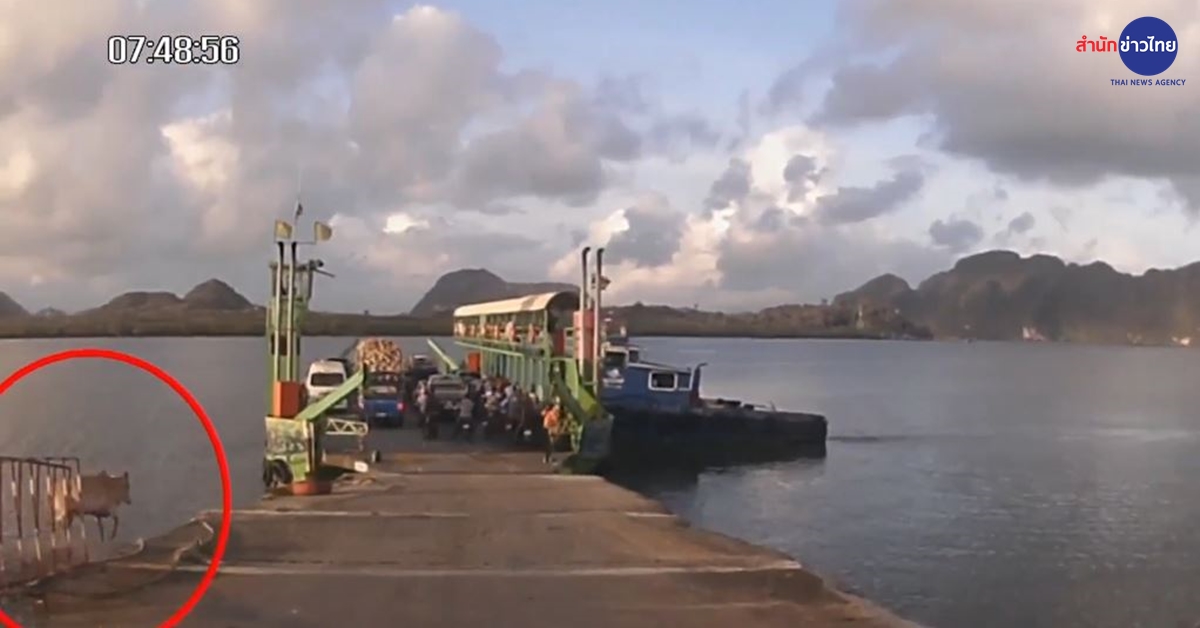 เมื่อเวลา 17.45 น. วานนี้ (4 ต.ค.) ผู้สื่อข่าวรายงานว่า ขณะกำลังขับรถยนต์ขึ้นแพขนานยนต์ ที่ท่าแพบ้านหลังสอด ต.เกาะลันตาน้อย อ.เกาะลันตา จ.กระบี่ เพื่อข้ามฟากไปยังท่าแพหัวหิน จู่ๆ มีลูกวัวเพศผู้ตัวหนึ่ง อายุประมาณ 1 ปีเศษ วิ่งผ่านหน้ารถ ก่อนกระโดดลงไปในน้ำ และพยายามว่ายน้ำไปกลางทะเล ท่ามกลางความตกตะลึงของชาวบ้านที่กำลังขึ้นแพเตรียมออกจากท่า