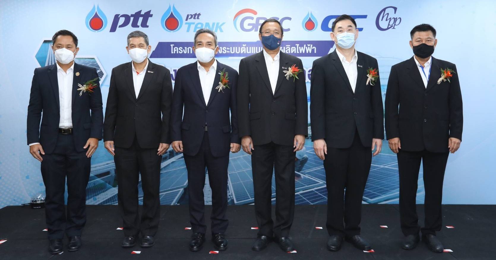 นายวิทวัส สวัสดิ์-ชูโต ประธานเจ้าหน้าที่เทคโนโลยีและวิศวกรรม บริษัท ปตท. จำกัด (มหาชน) (ปตท.) เปิดเผยว่า ปตท. และบริษัทในกลุ่มได้เล็งเห็นถึงโอกาสในการพัฒนาการใช้พลังงานหมุนเวียนของประเทศไทยสอดรับกับนโยบายรัฐในการผลิตไฟฟ้าจากพลังงานหมุนเวียนโดยได้ริเริ่มโครงการนำร่องการติดตั้งระบบผลิตไฟฟ้าจากพลังงานแสงอาทิตย์ชนิดลอยน้ำทะเล (Floating Solar) ขนาด 100 กิโลวัตต์ ในพื้นที่บริษัท พีทีที แทงค์ เทอร์มินัล จำกัด (PTT Tank) ต.มาบตาพุด อ.เมือง จ.ระยอง ซึ่งมีพื้นที่ติดทะเลเหมาะกับการเป็นต้นแบบติดตั้งการใช้งาน โดย บริษัท พีทีที โกลบอล เคมิคอล จำกัด (มหาชน) (GC) ได้พัฒนานวัตกรรมเม็ดพลาสติกเกรดพิเศษเพื่อนำมาผลิตทุ่นลอยน้ำ เพิ่มสารลดการสะสมของเพรียงทะเลที่เป็นมิตรต่อสิ่งแวดล้อมและสัตว์ทะเล และบริษัท โกลบอล เพาเวอร์ ซินเนอร์ยี่ จำกัด (มหาชน) (GPSC) ในฐานะแกนนำการดำเนินธุรกิจไฟฟ้าของ กลุ่ม ปตท. ได้ให้ บริษัท ผลิตไฟฟ้าและพลังงานร่วม จำกัด (CHPP) เป็นผู้ออกแบบและติดตั้งระบบผลิตไฟฟ้าจากพลังงานแสงอาทิตย์ในน้ำทะเล โดยในระยะแรกจะนำไฟฟ้าที่ผลิตได้ไปใช้ภายในสำนักงาน เพื่อเป็นต้นแบบการศึกษาและพัฒนารูปแบบทางธุรกิจ
