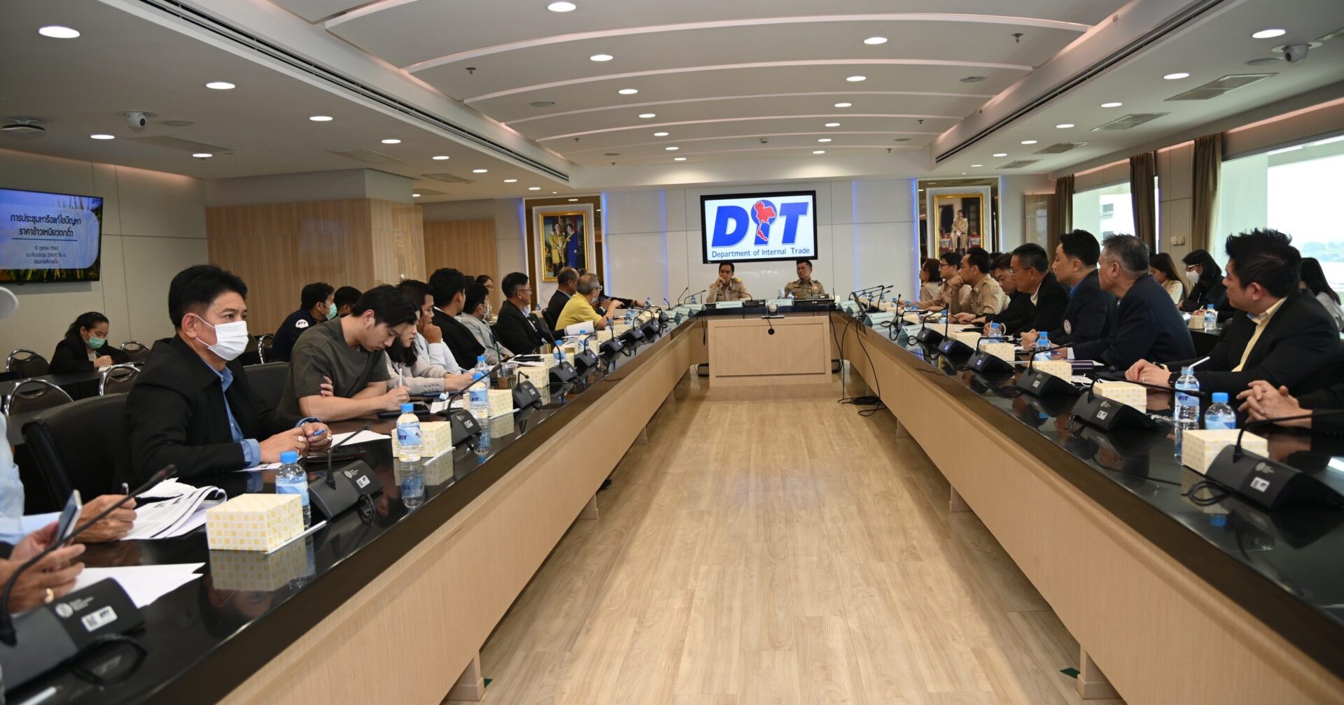 นายวัฒนศักย์ เสือเอี่ยม รองอธิบดี รักษาราชการแทนอธิบดีกรมการค้าภายใน และนายกีรติ รัชโน อธิบดีกรมการค้าต่างประเทศ เปิดเผยว่า เมื่อเร็วๆนี้ ได้ประชุมหารือติดตามสถานการณ์ราคาข้าวเหนียวที่มีราคาปรับตัวลดลง เพื่อหาแนวทางแก้ไขปัญหาข้าวเหนียว โดยมีสมาคมโรงสีข้าวไทย สมาคมโรงสีข้าวภาคตะวันออกเฉียงเหนือ สมาคมผู้ส่งออกข้าวไทย สมาคมผู้ประกอบการข้าวถุงไทย กรมการข้าว และสำนักงานเศรษฐกิจการเกษตรร่วมหารือ พบว่า ข้าวเปลือกเหนียวที่กำลังออกสู่ตลาดขณะนี้เป็นข้าวเหนียวนาปรังพันธุ์สันป่าตอง 1 ซึ่งปกติราคาตลาดจะต่ำกว่าข้าวเปลือกเหนียวนาปีพันธุ์ กข 6 ที่จะออกสู่ตลาดมากในช่วงปลายเดือนพฤศจิกายนนี้ ประกอบกับในช่วงที่ผ่านมามีฝนตกชุก ทำให้มีความชื้นสูง ราคารับซื้อข้าวที่ความชื้นไม่เกิน 15% จะอยู่ที่ตันละ 9,000 – 9,500 บาท (ข้าวสดความชื้น 28% ราคาอยู่ที่ตันละ 7,000 – 7,500 บาท)