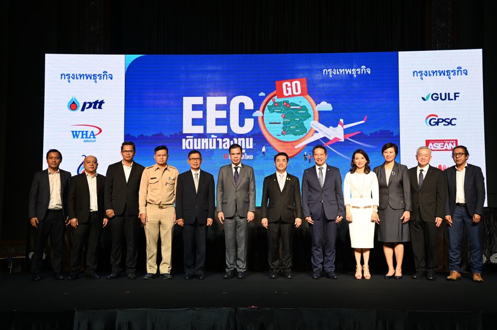 นายสุริยะ จึงรุ่งเรืองกิจ รัฐมนตรีว่าการกระทรวงอุตสาหกรรม ปาฐกถาพิเศษ “EEC Go เดินหน้าลงทุน” ว่า แม้ว่าไทยจะได้รับผลกระทบจากสงครามการค้าระหว่างจีน-สหรัฐในปี 2562 และได้รับผลกระทบจากโควิด-19 ในปี 2563 แต่ยังเชื่อมั่นว่าเศรษฐกิจไทยจะเจริญเติบโตและเดินหน้าได้จากสภาพภูมิศาสตร์ที่เป็นศูนย์กลางของกลุ่มประเทศ CLMV รวมทั้งการจัดการปัญหาโควิดได้ดีเป็นลำดับต้นๆของโลก