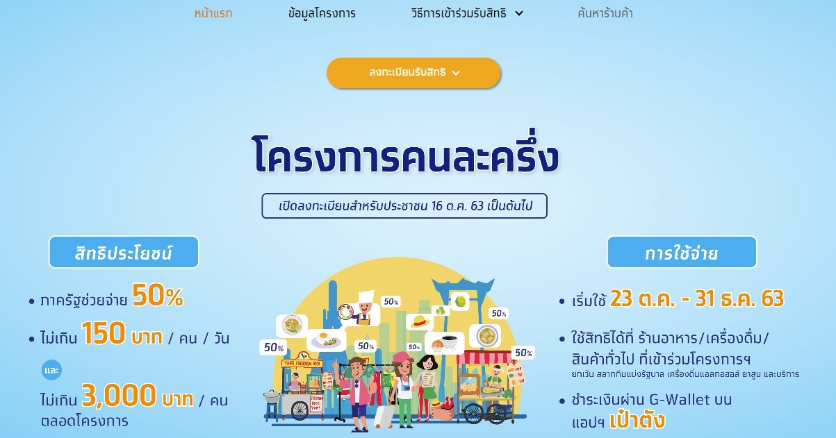 นายพรชัย ฐีระเวช ที่ปรึกษาด้านเศรษฐกิจการเงิน สำนักงานเศรษฐกิจการคลัง ในฐานะรองโฆษกกระทรวงการคลัง เปิดเผยว่า ขณะนี้โครงการคนละครึ่งมีประชาชนลงทะเบียนเข้าร่วมโครงการกว่า 9.4 ล้านคน และมีร้านค้าลงทะเบียนเข้าร่วมโครงการกว่า 3.8 แสนร้านค้า ซึ่ง ณ วันที่ 26 ตุลาคม 2563 มียอดการใช้จ่ายสะสม 704.5 ล้านบาท แบ่งเป็นเงินที่ประชาชนจ่าย 362.5 ล้านบาท และภาครัฐร่วมจ่ายอีก 342 ล้านบาท ยอดใช้จ่ายเฉลี่ย 232 บาทต่อครั้ง โดยใช้จ่ายครบทุกจังหวัด และจังหวัดที่มีการใช้จ่ายมากที่สุด 3 อันดับแรก ได้แก่ กรุงเทพมหานคร สงขลา และนครศรีธรรมราช