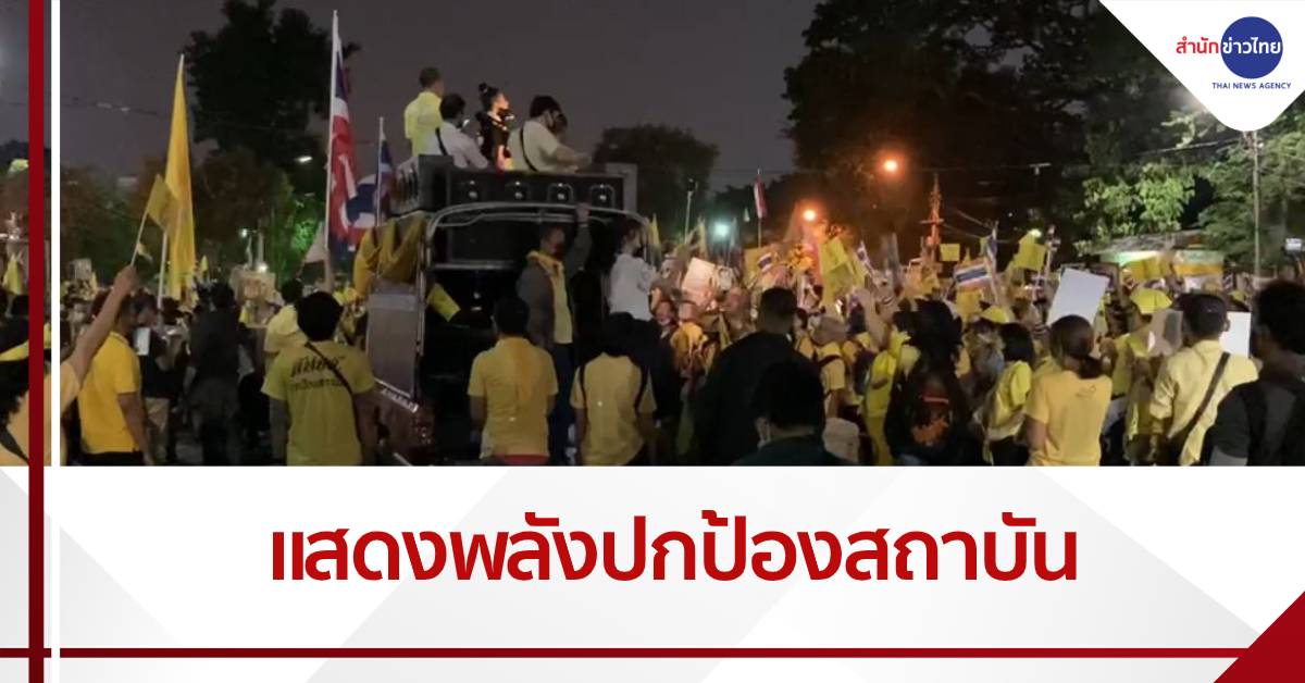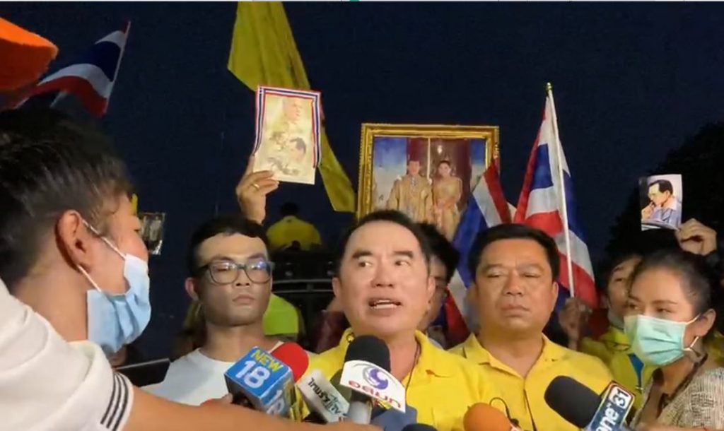 กทม. 27 ต.ค. – ผู้ชุมนุมกลุ่มคนสวมเสื้อเหลือง รวมตัวกันบริเวณลานกิจกรรมสวนลุมพินี พร้อมชูพระบรมฉายาลักษณ์ และธงชาติ เพื่อแสดงพลังและประกาศเจตนารมณ์คัดค้านการปฏิรูปสถาบัน โดยมี นพ.วรงค์ เดชกิจวิกรม นพ.ตุลย์ สิทธิสมวงศ์ และนายสาธิต เซกัล เป็นแกนนำปราศรัยโจมตีว่าการชุมนุมของราษฎร 2563 มีผู้อยู่เบื้องหลังคอยยุงยงปลุกปั่นนักเรียน นักศึกษา ซึ่งทางกลุ่มจะออกมาเคลื่อนไหวแสดงพลังปกป้องสถาบันพระมหากษัตริย์