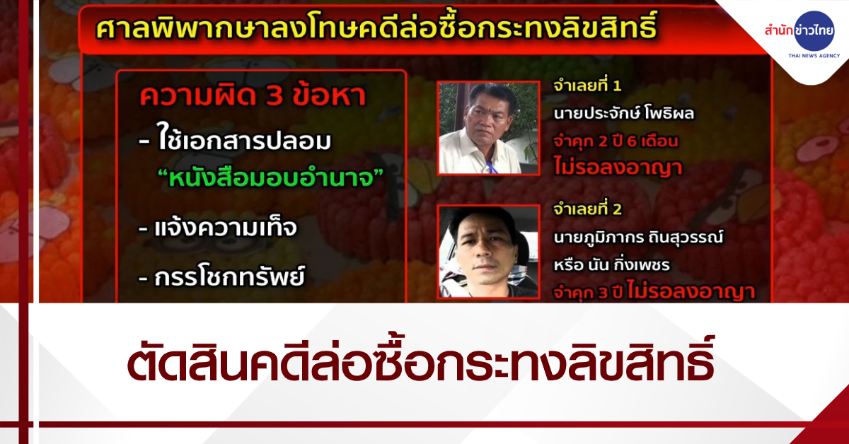 นครราชสีมา 28 ต.ค. – คดีกรรโชกทรัพย์เด็กหญิงวัย 15 ปี โดยล่อซื้อกระทงลิขสิทธิ์ ที่ จ.นครราชสีมา วันนี้ ศาลชั้นต้นพิพากษาจำคุกจำเลยทั้ง 2 คน โดยไม่รอลงอาญา ขณะที่จำเลยทั้งสองยื่นหลักทรัพย์ขอประกันตัวสู้คดีในชั้นอุทธรณ์