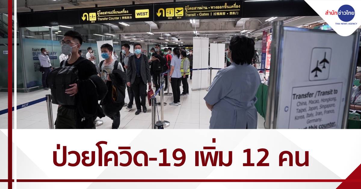 - ผู้ป่วยรายใหม่ 12 ราย มาจาก ฟิลิปปินส์ 1 ราย สหรัฐอาหรับเอมิเรตส์ 1 ราย และ คูเวต 2 ราย โดยทั้งหมดเข้า State Quarantine