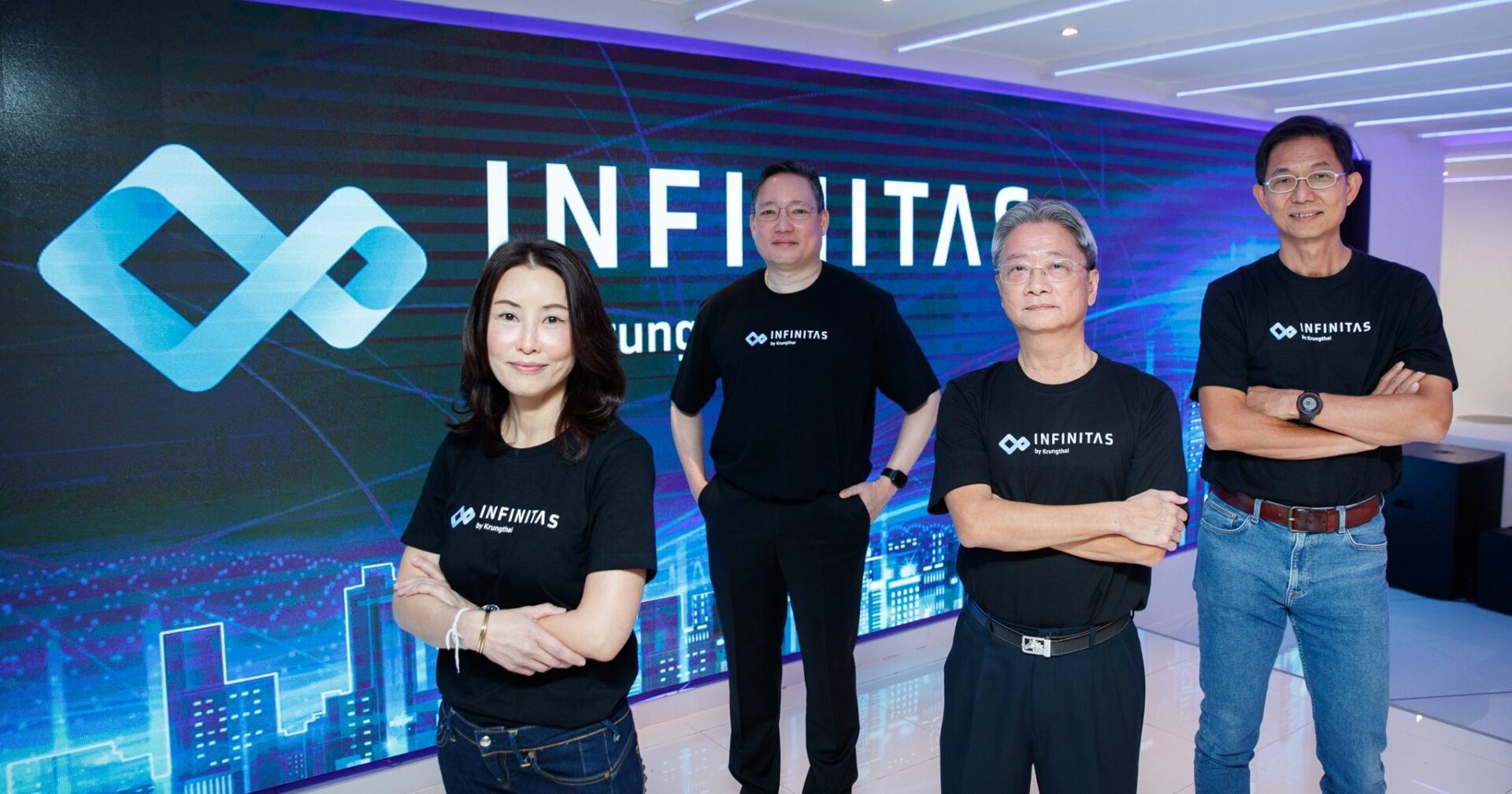 นายไกรฤทธิ์ อุชุกานนท์ชัย รองประธานกรรมการ ประธานกรรมการบริหาร ธนาคารกรุงไทย และประธานกรรมการบริษัท อินฟินิธัส บาย กรุงไทย จำกัด นายผยง ศรีวณิช กรรมการผู้จัดการใหญ่ ธนาคารกรุงไทย นายสมคิด จิรานันตรัตน์ ที่ปรึกษากรรมการผู้จัดการใหญ่ และ นางประราลี รัตน์ประสาทพร รองกรรมการผู้จัดการใหญ่ สายงาน Digital Solutions และรักษาการกรรมการผู้จัดการ บริษัท อินฟินิธัส บาย กรุงไทย จำกัด ร่วมเปิดตัว บริษัท อินฟินิธัส บาย กรุงไทย จำกัด บริษัทวิจัยและพัฒนาผลิตภัณฑ์ทางการเงินดิจิทัลรูปแบบใหม่ ที่ Innovation Lab ชั้น 3 อาคารนานาเหนือ ธนาคารกรุงไทย สำนักงานใหญ่
