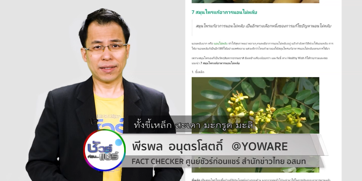 12 พ.ย. – บนสังคมออนไลน์มีการแชร์ 7 สมุนไพรแก้อาการนอนไม่หลับได้ ข้อเท็จจริงเรื่องนี้เป็นอย่างไร ติดตามกับ คุณพีรพล อนุตรโสตถิ์ จากศูนย์ชัวร์ก่อนแชร์