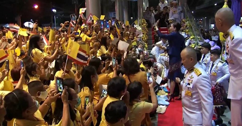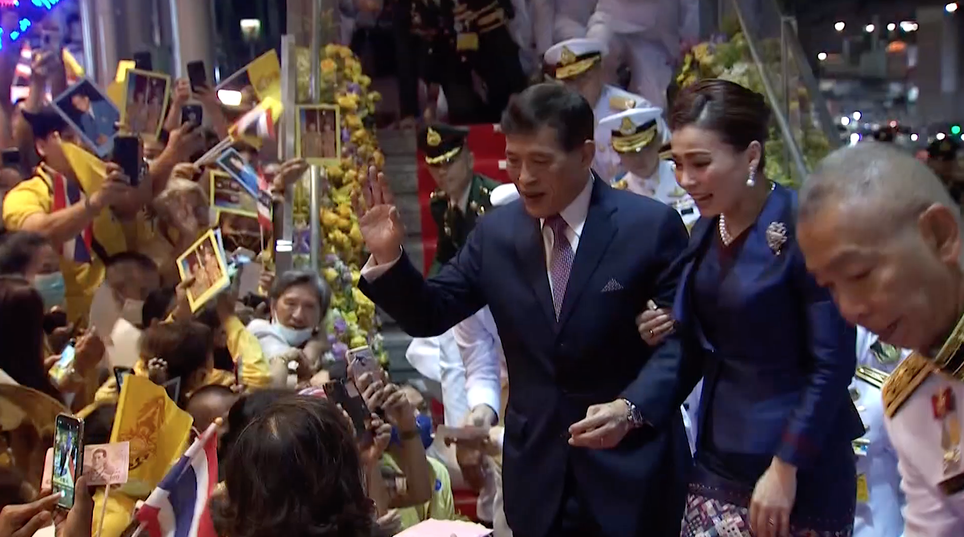 กรุงเทพฯ 14 พ.ย.-ประชาชนหลั่งไหลเฝ้าทูลละอองธุลีพระบาทรับเสด็จ พระบาทสมเด็จพระเจ้าอยู่หัว และสมเด็จพระนางเจ้าฯ พระบรมราชินี ในการเสด็จพระราชดำเนิน ทรงเปิดรถไฟฟ้าสายสีน้ำเงินส่วนต่อขยาย