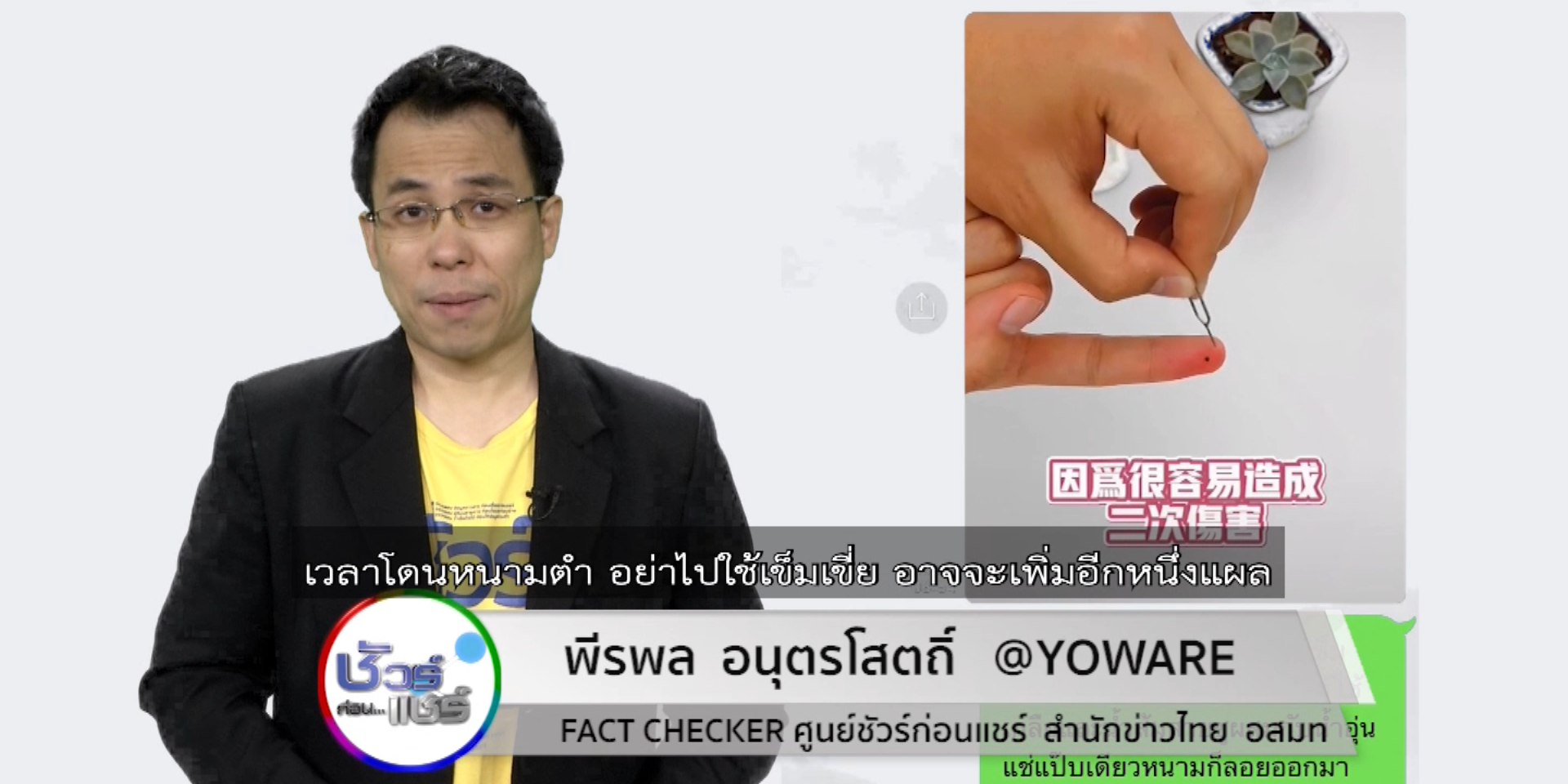 บนสังคมออนไลน์แชร์คลิปแนะนำวิธีการนำหนามออกจากนิ้วหรือฝ่ามือ แต่ข้อเท็จจริงเรื่องนี้เป็นอย่างไร ติดตามกับ คุณพีรพล อนุตรโสตถิ์ จากศูนย์ชัวร์ก่อนแชร์