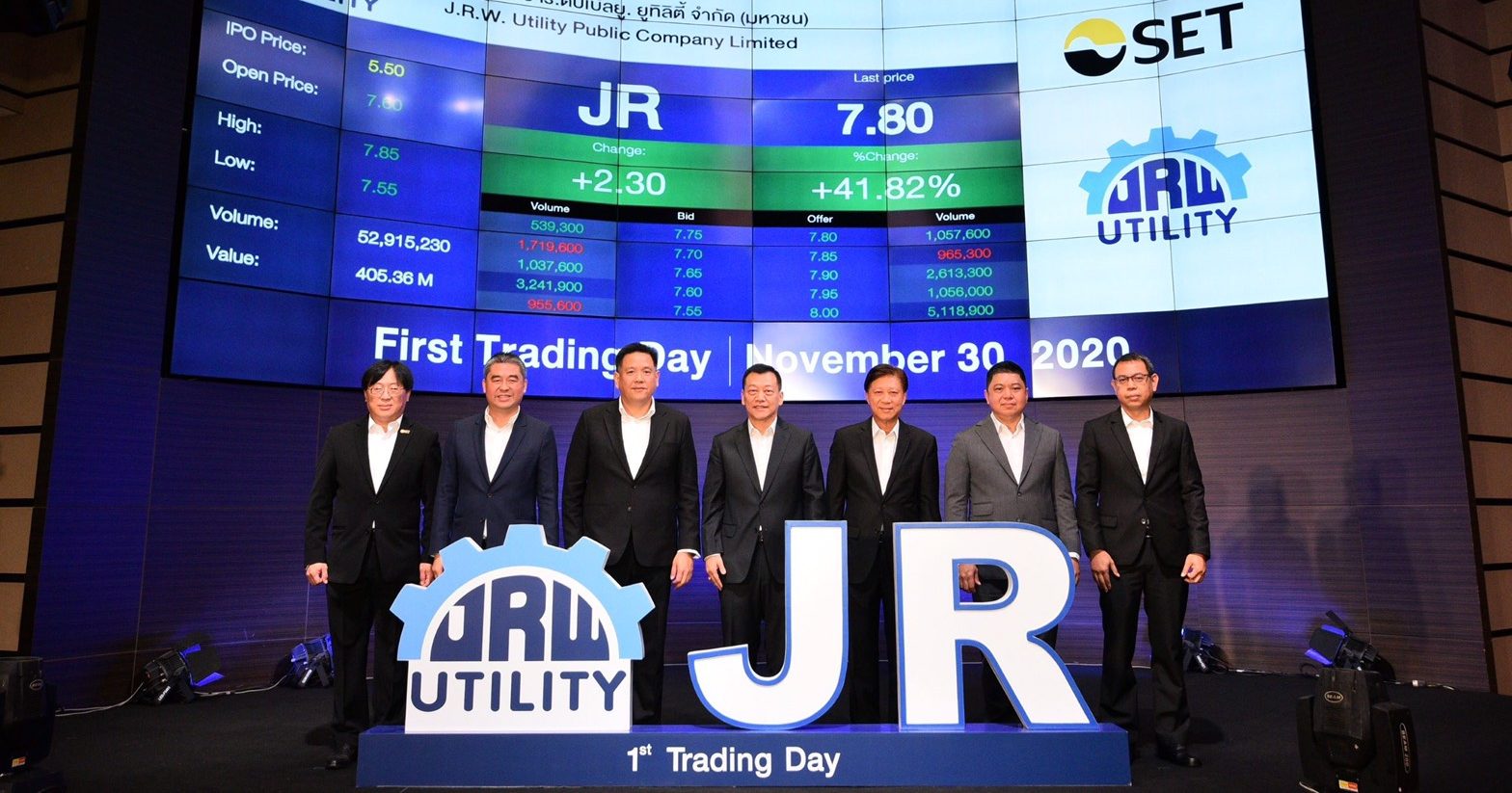 บริษัท เจ.อาร์.ดับเบิ้ลยู. ยูทิลิตี้ จำกัด(มหาชน) หรือ JR ผู้รับเหมาวางระบบสื่อสารโทรคมนาคมและเทคโนโลยีสารสนเทศ และระบบไฟฟ้าแบบครบวงจร เข้าซื้อขายในตลาดหลักทรัพย์ฯ วันแรก (30 พ.ย.63) ด้วยมูลค่าหลักทรัพย์ ณ ราคา IPO 4,180 ล้านบาท โดยเปิดเทรดวันแรกราคาอยู่ที่ 7.60 บาท เหนือจอง 2.10 บาท หรือเพิ่มขึ้น 38.18% จากราคา IPO 5.50 บาท