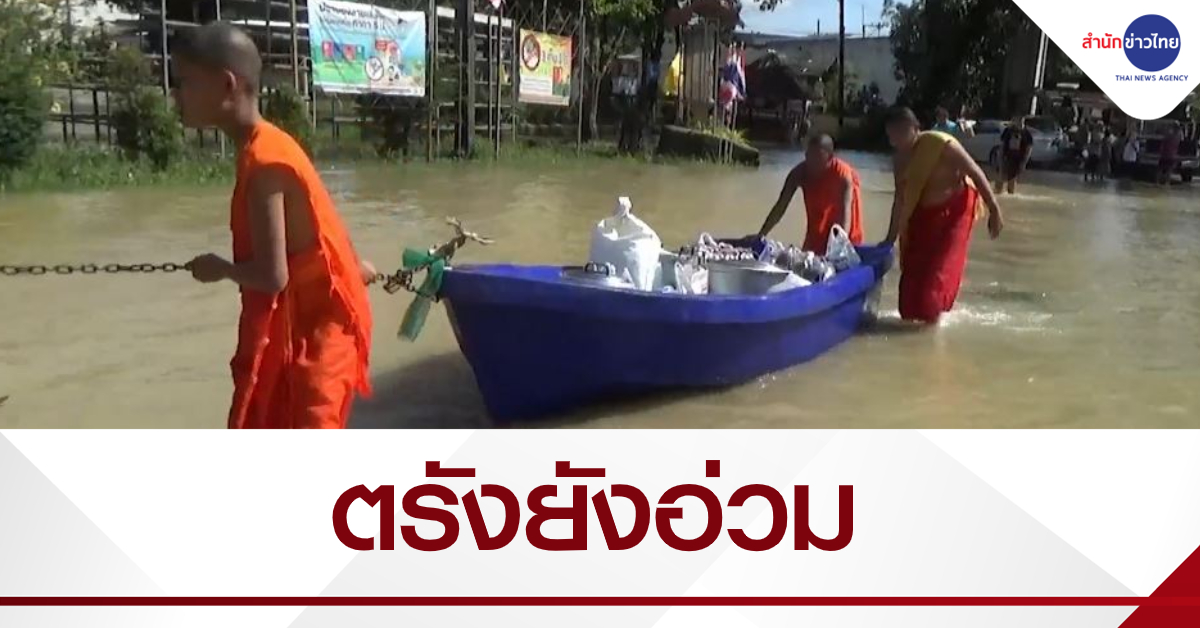 อ.เมืองตรัง ยังต้องเผชิญกับภาวะน้ำท่วม โดยที่วัดประสิทธิชัย และโรงเรียนเทศบาล 7 (วัดประสิทธิชัย) ต.ทับเที่ยง ขณะนี้ยังมีน้ำท่วมขังสูง 20-70 เซนติเมตร สามเณรต้องนำเรือท้องแบนมาบรรทุกภัตตาหารที่ญาติโยมนำมาถวาย และลากไปที่โรงฉัน โดยมีชาวบ้านบางส่วนเดินลุยน้ำเข้าไปทำบุญที่วัด ซึ่งระหว่างนั้นมีชายวัย 20 ปี เตรียมหยิบโทรศัพท์มือถือขึ้นมาถ่ายคลิป แต่เกิดพลาดทำมือถือหล่นน้ำ ชาวบ้านต้องช่วยกันควานหา