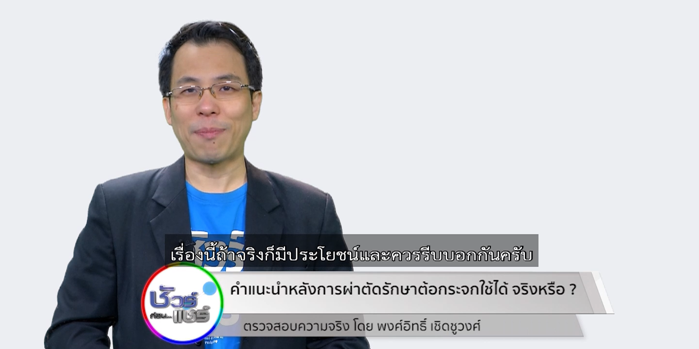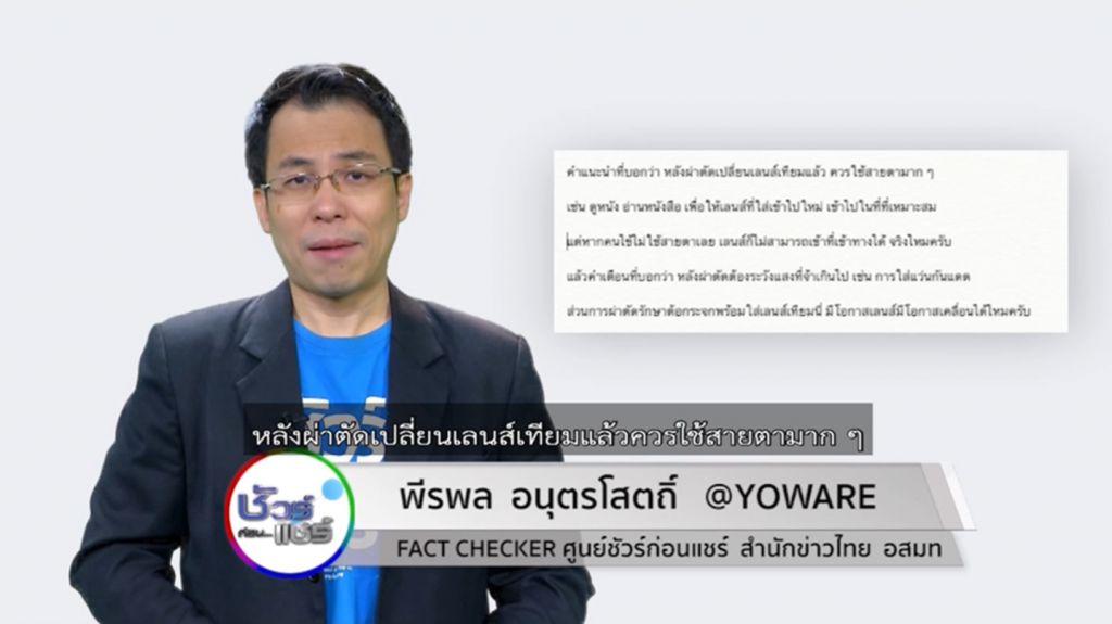 6 ธ.ค. – บนสังคมออนไลน์ แชร์คำแนะนำสำหรับคนที่รักษาต้อกระจก เรื่องนี้จริงหรือไม่ ติดตามกับ คุณพีรพล อนุตรโสตถิ์ จากศูนย์ชัวร์ก่อนแชร์