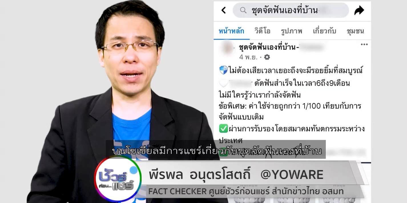 10 ธ.ค. – บนสังคมออนไลน์มีการแชร์ขายชุดจัดฟันเองที่บ้าน บอกว่าสามารถจัดฟันเองได้โดยไม่ต้องพบทันตแพทย์ อุปกรณ์นี้จะใช้ได้จริงหรือไม่ ติดตามกับ คุณพีรพล อนุตรโสตถิ์ จากศูนย์ชัวร์ก่อนแชร์