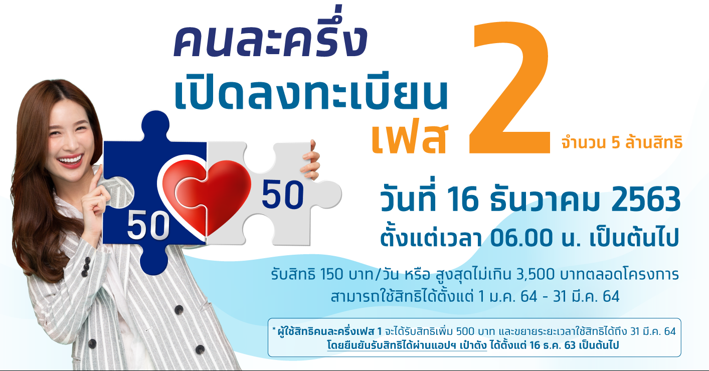 นางสาวกุลยา ตันติเตมิท รักษาราชการแทน ผู้อำนวยการสำนักงานเศรษฐกิจการคลัง (สศค.) ในฐานะโฆษกกระทรวงการคลัง เปิดเผยว่า หลังจากกระทรวงการคลัง เปิดให้ประชาชน ลงทะเบียนโครงการคนละครึ่งเฟส 2 เพิ่มเติมอีก 5 ล้านคน ในวันพุธที่ 16 ธันวาคม 2563 เริ่มให้ลงทะเบียนตั้งแต่เวลา 06.00 น. – 23.00 น. จนกว่าจะครบ 5 ล้านสิทธิ นับว่ามีประชาชนสนใจลงทะเบียนเฟส 2 ครบจำนวน 5 ล้านสิทธิ์ในเวลา 08.06 น. เพียง 2 ชั่วโมงแรกของการเปิดลงทะเบียน