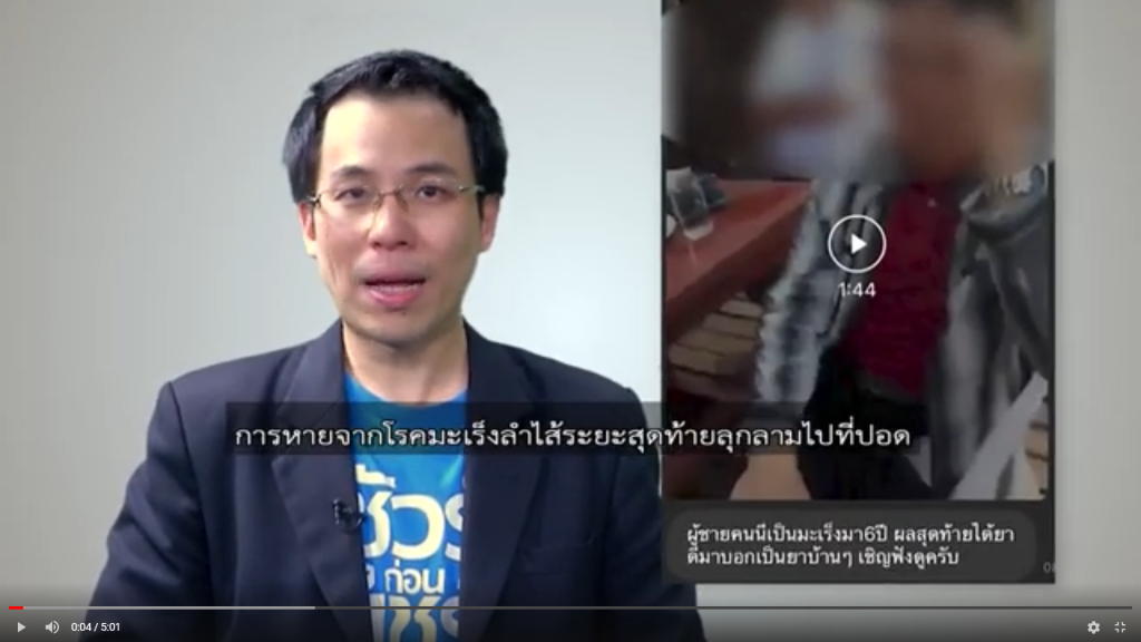 14 ธ.ค. – บนสังคมออนไลน์แชร์คลิปชายคนหนึ่งบอกเล่าประสบการณ์ที่หายจากโรคมะเร็งลำไส้ระยะสุดท้าย ด้วยการดื่มน้ำต้มใบมะละกอเป็นประจำ 🚨🚨🚨 หืม… ชัวร์เหรอ ?