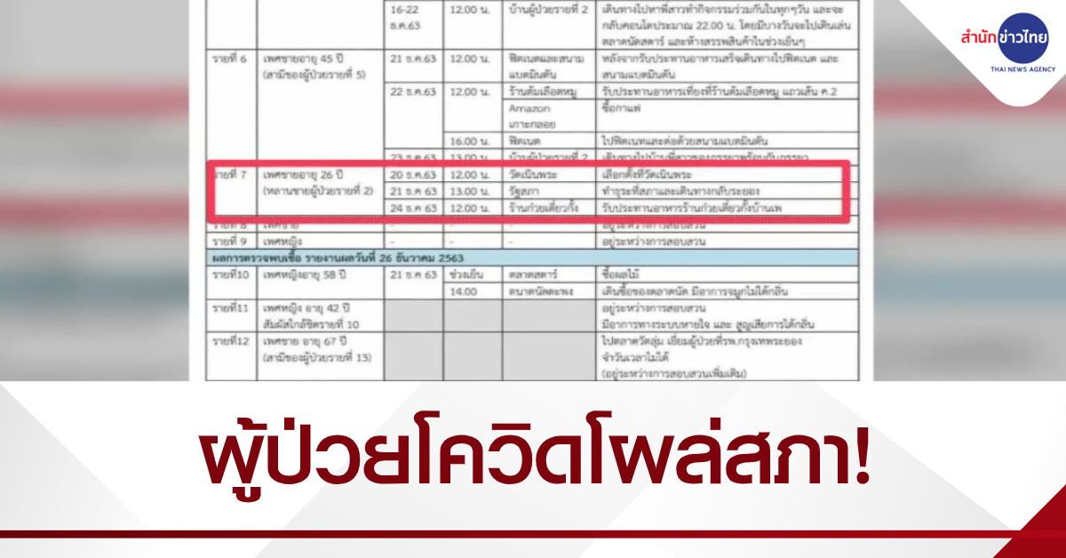 กรุงเทพฯ 27 ธ.ค. – สภาวุ่น! พบผู้ป่วยโควิด-19 จาก จ.ระยอง มีประวัติเดินทางมาอาคารรัฐสภา เมื่อวันที่ 21 ธ.ค. ด้านเลขาธิการสภาฯ สั่ง ขรก.-อนุ กมธ. ตรวจโรคด่วนและเฝ้าระวังอาการ เชื่อความเสี่ยงยังต่ำ