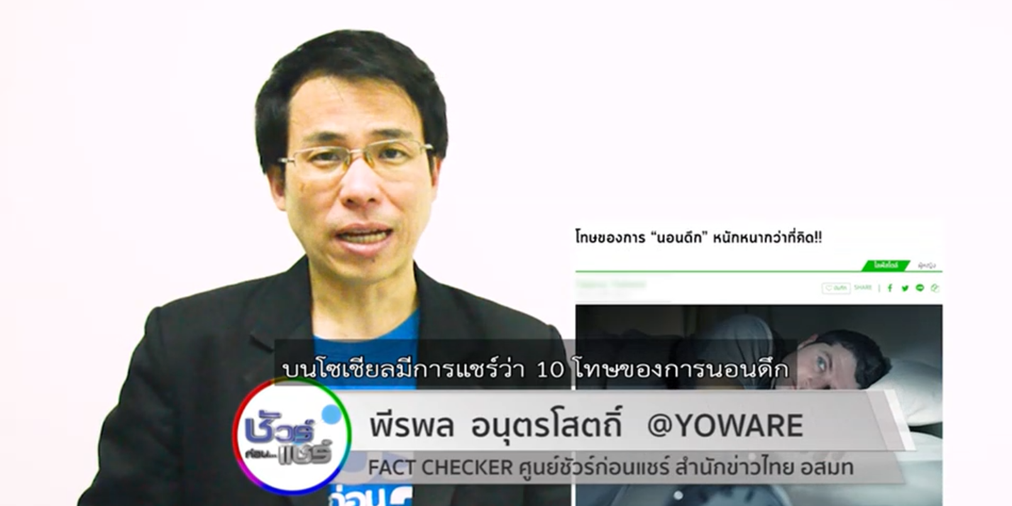 5 ม.ค. – บนสังคมออนไลน์มีการแชร์ โทษ 10 ข้อของการนอนดึก เรื่องนี้จริงหรือไม่ ติดตามกับ คุณพีรพล อนุตรโสตถิ์ จากศูนย์ชัวร์ก่อนแชร์