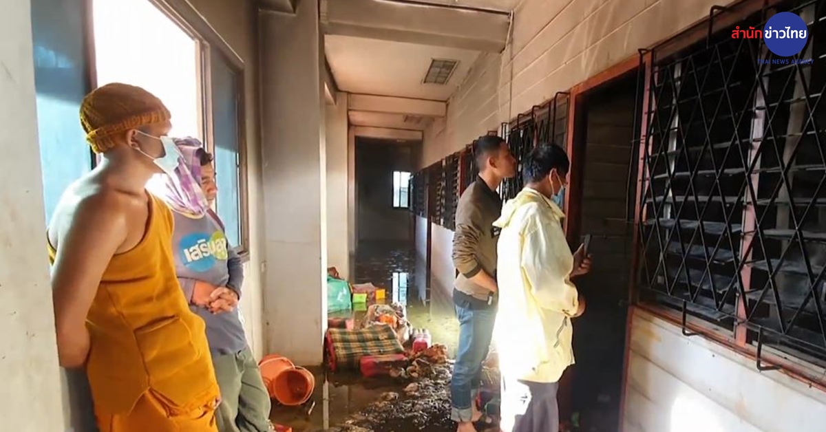 เจ้าหน้าที่เข้าตรวจสอบภายในวัดปากน้ำ บุ่งสระพัง ต.กุดลาด อ.เมืองอุบลราชธานี หลังเกิดเหตุเพลิงไหม้ภายในกุฏิสมเด็จพระพุฒาจารย์ ชั้น 3 ซึ่งใช้เป็นห้องเก็บสิ่งของประเภทหมอน ผ้า เครื่องใช้ที่ญาติโยมนำมาถวาย ไม่มีพระเณรพักอาศัย โชคดีชาวบ้านและพระเณรในวัดช่วยกันดับไว้ทัน ก่อนเจ้าหน้าที่ดับเพลิงไปถึง พบห้องต้นเพลิงเสียหายเพียงห้องเดียว