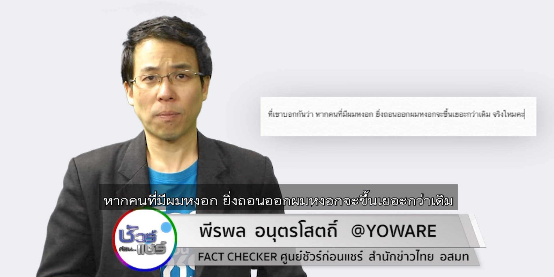 10 ม.ค. – บนสังคมออนไลน์ แชร์เตือนถึงผลกระทบของการถอนผมงอกว่า จะยิ่งทำให้ผมยิ่งหงอก แต่ข้อเท็จจริงเรื่องนี้เป็นอย่างไร ติดตามกับ คุณพีรพล อนุตรโสตถิ์ จากศูนย์ชัวร์ก่อนแชร์