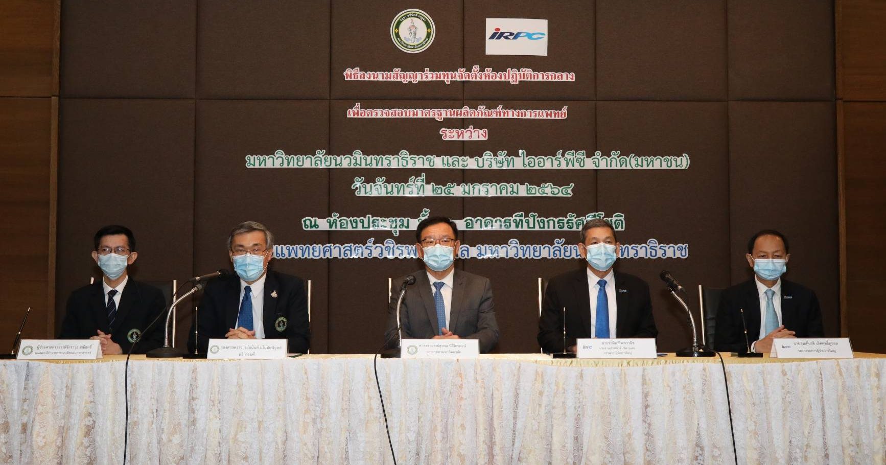 กรุงเทพฯ 26 ม.ค – ม.นวมินทร์ - IRPC จัดตั้งแล็บตรวจสอบมาตรฐานผลิตภัณฑ์ทางการแพทย์ครบวงจรแห่งแรกของประเทศ ส่งเสริมประชาชนสามารถเข้าถึงผลิตภัณฑ์อย่างทั่วถึง คาดว่าจะดำเนินการแล้วเสร็จภายในไตรมาส 2 ปี 2564