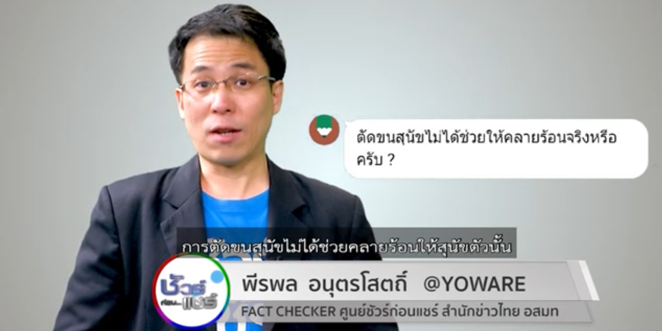 28 ม.ค. – บนสังคมออนไลน์มีการแชร์ว่าการตัดขนไม่ได้ช่วยคลายร้อนให้สุนัข เรื่องนี้จริงหรือไม่ ติดตามกับ คุณพีรพล อนุตรโสตถิ์ จากศูนย์ชัวร์ก่อนแชร์