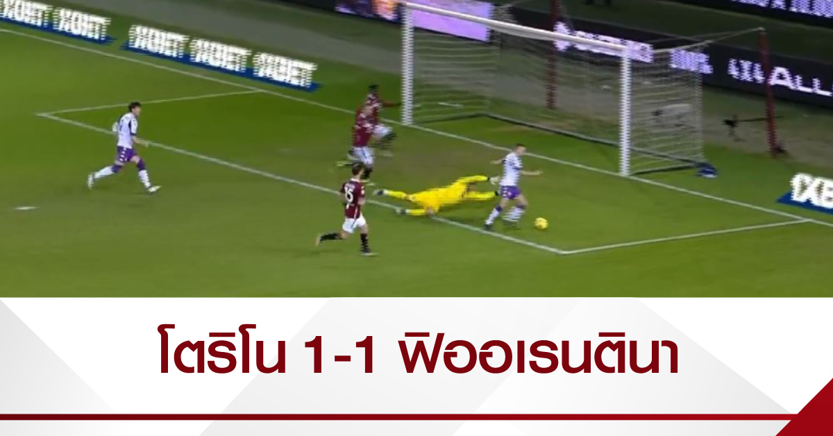 ก่อนหมดเวลา 2 นาที โตริโน ตีเสมอเป็น 1-1 ได้ในนาทีที่ 88 จาก อันเดรีย เบลอตติ จบเกม เสมอกัน 1-1 แบ่งไปทีมละ 1 คะแนน โตริโน มี 15 คะแนน จาก 20 นัด อยู่อันดับ 17 ส่วน ฟิออเรนตินา เตะ 20 นัด มี 22 คะแนน รั้งอันดับ 12 ของตาราง. – สำนักข่าวไทย