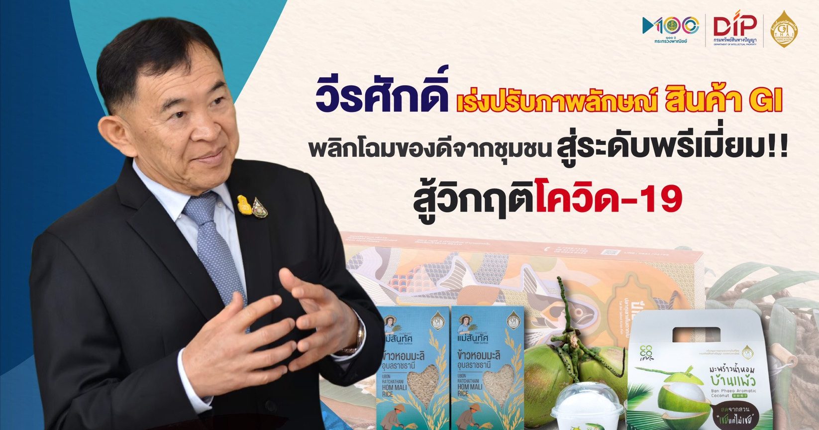 นายวีรศักดิ์ หวังศุภกิจโกศล รัฐมนตรีช่วยว่าการกระทรวงพาณิชย์ เปิดเผยว่าการส่งเสริมและพัฒนาสินค้า GI เป็นหนึ่งในนโยบายด้านการเพิ่มศักยภาพทางเศรษฐกิจของประเทศที่รัฐบาลให้ความสำคัญ กรมทรัพย์สินทางปัญญา กระทรวงพาณิชย์ จึงได้จัดโครงการพัฒนาบรรจุภัณฑ์สินค้า GI โดยดึงนักออกแบบมาประสบการณ์ร่วมพัฒนาภาพลักษณ์และบรรจุภัณฑ์สินค้า GI ให้มีความโดดเด่น สร้างการจดจำตอบโจทย์ผู้บริโภคในปัจจุบัน และยังคงไว้ ซึ่งอัตลักษณ์ของความเป็นสินค้า GI ให้ยังคงอยู่กับตัวบรรจุภัณฑ์ โดยเพิ่มมูลค่าให้กับสินค้า GI พร้อมก้าวสู่ตลาดพรีเมียม หวังเจาะตลาดกลุ่มลูกค้าที่มีกำลังซื้อสูงและตลาดต่างประเทศ”