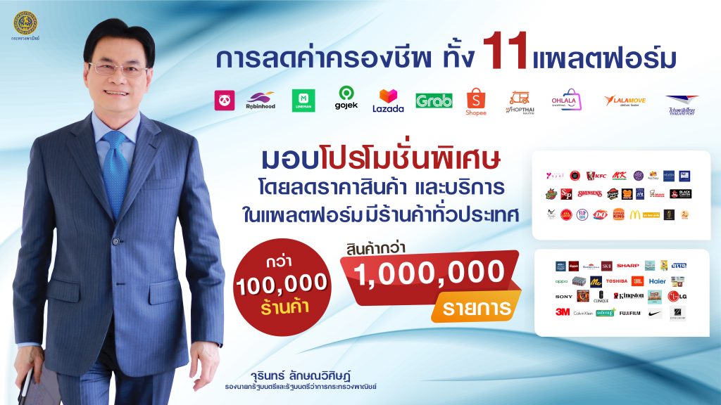อย่างไรก็ตาม วันนี้เป็นการเปิดตัวงานพาณิชย์ลดราคา!ช่วยประชาชน Lot ที่ 9 หรือ เรียกว่า “พาณิชย์ลดราคา! ช่วยประชาชน ผ่านแพลตฟอร์ม” มีแพลตฟอร์มที่เข้าร่วมลดราคากับกระทรวงพาณิชย์จำนวน 11 แพลตฟอร์ม ประกอบด้วย