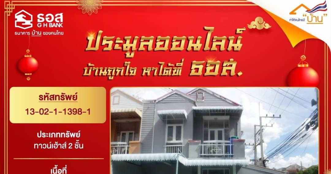 นายฉัตรชัย ศิริไล กรรมการผู้จัดการ ธนาคารอาคารสงเคราะห์ (ธอส.) เปิดเผยว่า เนื่องในโอกาสเทศกาลตรุษจีน ปี 2564 ธอส. จึงได้จัดโปรโมชั่นพิเศษมอบให้แก่ลูกค้าที่ต้องการมีที่อยู่อาศัย เพื่อเป็นของขวัญที่ล้ำค่าให้กับตนเองและครอบครัว โดยนำบ้านมือสองทั่วประเทศรวม 999 รายการ มาออกประมูลให้กับลูกค้าได้เลือกซื้อง่าย ๆ ผ่าน Application : G H Bank Smart NPA ในวันพฤหัสบดีที่ 11 กุมภาพันธ์ 2564 เวลา 12.00 -13.00 น. ด้วยราคาเริ่มต้นประมูลที่ให้ส่วนลดพิเศษสูงถึง 40% จากราคาปกติ และผู้ชนะการประมูลยังมีสิทธิ์ได้รับอั่งเปาเป็นส่วนลดเพิ่มอีกถึง 10% จากราคาที่ปิดประมูล เพียงทำสัญญาและทำนิติกรรมภายในวันที่ 30 เมษายน 2564สำหรับทรัพย์ที่นำมาเปิดประมูลในครั้งนี้ แบ่งเป็น ทรัพย์ที่ตั้งอยู่ในพื้นที่กรุงเทพฯ และปริมณฑล จำนวน 499 รายการ มีรายการที่น่าสนใจ อาทิ รายการที่ให้ส่วนลดสูงสุด 40% จากราคาปกติ คือ ห้องชุดขนาด 30.87 ตารางเมตร ในโครงการหมู่บ้านอยู่สบาย(หนึ่ง) อ.พระประแดง จ.สมุทรปราการ ราคาเริ่มต้นประมูล 180,000 บาท รายการที่ราคาเริ่มต้นประมูลต่ำสุดเพียง 45,000 บาท ได้แก่ ห้องชุด ขนาด 26.25 ตารางเมตร โครงการปลาทอง อ.เมืองปทุมธานี จ.ปทุมธานี ส่วนทรัพย์เด่นทำเลดี อาทิ บ้านเดี่ยว พื้นที่ 58.9 ตารางวา ในหมู่บ้านชวนชมรัตน์ อ.บางบัวทอง จ.นนทบุรี ซึ่งใช้เวลาเดินทางไปยังรถไฟฟ้าสายสีม่วง สถานีคลองบางไผ่เพียง 18 นาทีเท่านั้น และศูนย์การค้าเซ็นทรัลพลาซ่า เวสต์เกต 20 นาที ราคาเริ่มต้นประมูล 2,955,000 บาท และทาวน์เฮ้าส์ เนื้อที่ 30 ตารางวา ในหมู่บ้านวรารักษ์ คลอง 3 คลองหลวง อ.คลองหลวง จ.ปทุมธานี เป็นทรัพย์ ที่อยู่ในบริเวณที่สามารถเดินทางไปยังศูนย์การค้าฟิวเจอร์พาร์ค รังสิต มหาวิทยาลัยกรุงเทพ วิทยาเขตรังสิต และตลาดไท ได้อย่างสะดวก ราคาเริ่มต้นประมูล 1,980,000 บาท