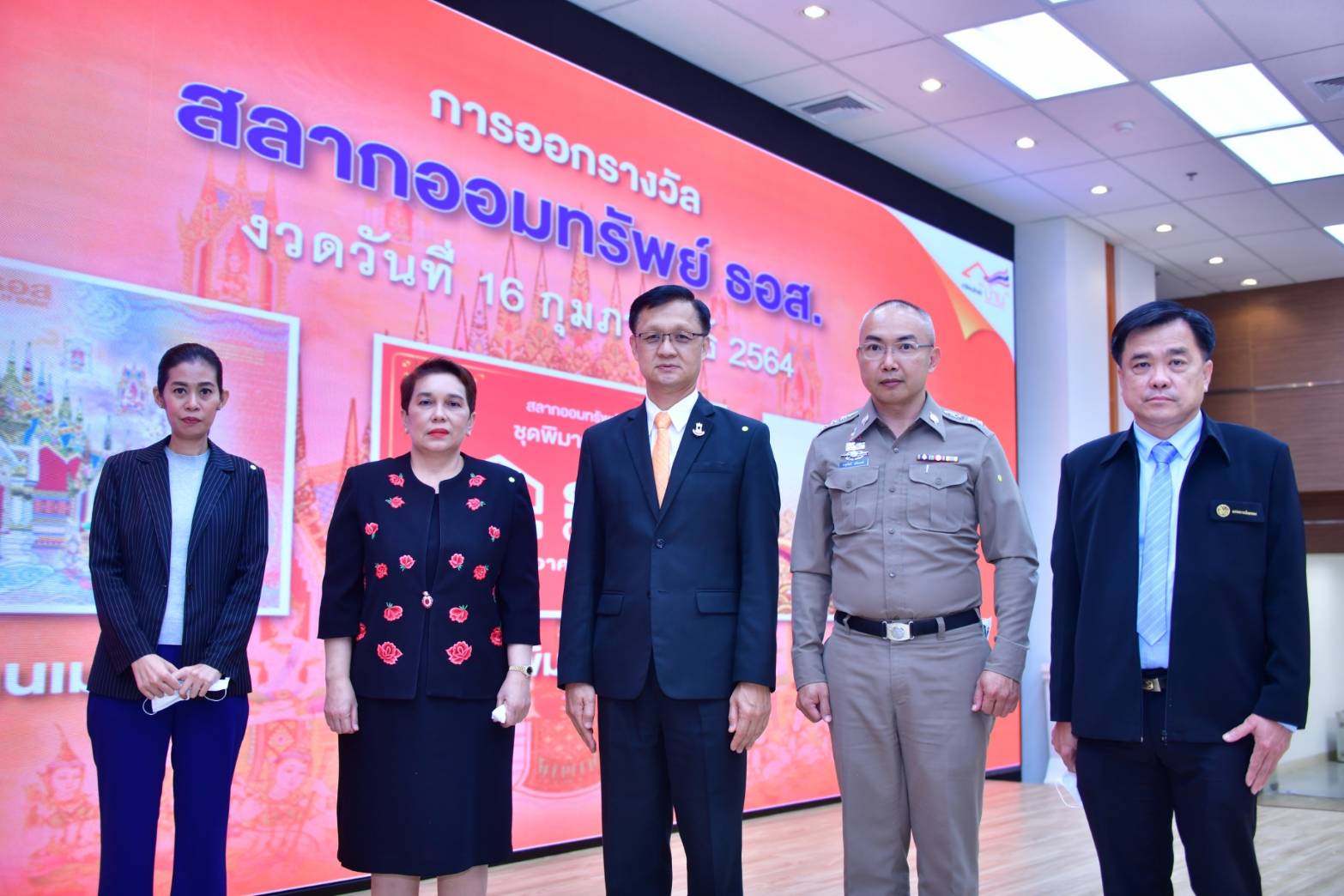 นายพงษ์ศักดิ์ คำนวนศิริ ผู้ช่วยกรรมการผู้จัดการ สายงานวิเคราะห์สินเชื่อ และรักษาการรองกรรมการผู้จัดการ กลุ่มงานสินเชื่อ ธนาคารอาคารสงเคราะห์(ธอส.) เป็นประธานกรรมการออกรางวัลสลากออมทรัพย์ธนาคารอาคารสงเคราะห์ งวดวันที่ 16 กุมภาพันธ์ 2564 พร้อมด้วยคณะกรรมการออกรางวัลจากภาครัฐ และสื่อมวลชน รวม 5 ท่าน โดยมีพันตำรวจเอก บุญส่ง จันทรีศรี ผู้อำนวยการสำนักงานสลากกินแบ่งรัฐบาล นางสุดจิตตรา คำดี ผู้ช่วยกรรมการผู้จัดการ สายงานสื่อสารและภาพลักษณ์องค์กร และนางราณี เพชรสงค์ รักษาการผู้ช่วยกรรมการผู้จัดการ สายงานการเงินและบัญชี เข้าร่วมสังเกตการณ์การออกรางวัล ซึ่งการออกรางวัลในครั้งนี้ประกอบด้วยสลากชุดวิมานเมฆ หน่วยละ 1 ล้านบาท ครั้งที่ 17 จำนวน 27 รางวัล ๆ ละ 200,000 บาท ชุดพิมานมาศ ครั้งที่ 12 หน่วยละ 50,000 บาท จำนวน 7 หมวด ๆ ละ 10 รางวัล ๆ ละ 50,000 บาท และชุดเกล็ดดาว หน่วยละ 5,000 บาท ครั้งที่ 4 จำนวน 5 หมวด โดยจะใช้ผลการออกรางวัลร่วมกันทุกหมวด รางวัลที่ 1 หมวดละ 1 รางวัล ๆ ละ 1,000,000 บาท รวมถึงรางวัลที่ 2, 3, 4 และมีรางวัลเลขท้าย 3 ตัว และรางวัลเลขท้าย 2 ตัว (หมุน 1 ครั้ง) ทั้งเลขตรงและเลขสลับ