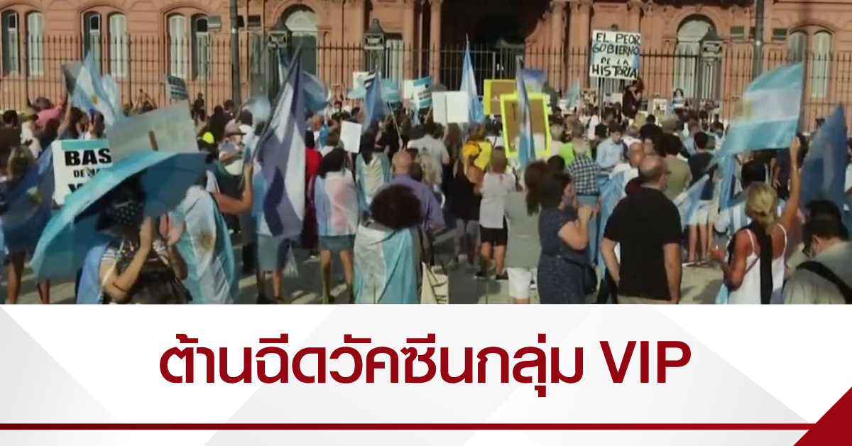 ชาวอาร์เจนตินาหลายพันคนรวมตัวประท้วงในกรุงบัวโนสไอเรส ต่อต้านการฉีดวัคซีนให้กลุ่มวีไอพี หลังมีคนออกมาแฉว่า มีบางกลุ่มใช้ความสัมพันธ์ส่วนตัวกับเจ้าหน้าที่รัฐบาลระดับสูง เข้าถึงวัคซีนป้องกันโควิด-19 แม้ไม่ได้อยู่ในกลุ่มเสี่ยงหรือกลุ่มที่จำเป็นต้องได้รับการฉีดวัคซีน ซึ่งรัฐบาลอาร์เจนตินาเริ่มฉีดวัคซีนมาตั้งแต่ปลายเดือนธันวาคมที่ผ่านมา โดยกลุ่มผู้ประท้วงพากันตีหม้อ เคาะกระทะ พร้อมชูป้ายทวงคืนวัคซีนว่า วัคซีนไม่ควรเป็นเรื่องของอภิสิทธิ์ชน ด้านผู้ประท้วงรายหนึ่ง เผยว่า การออกมาประท้วงครั้งนี้ เพื่อต้องการให้รัฐบาลแก้ปัญหา นักการเมืองไม่ควรได้รับการฉีดวัคซีนก่อนประชาชน. – สำนักข่าวไทย