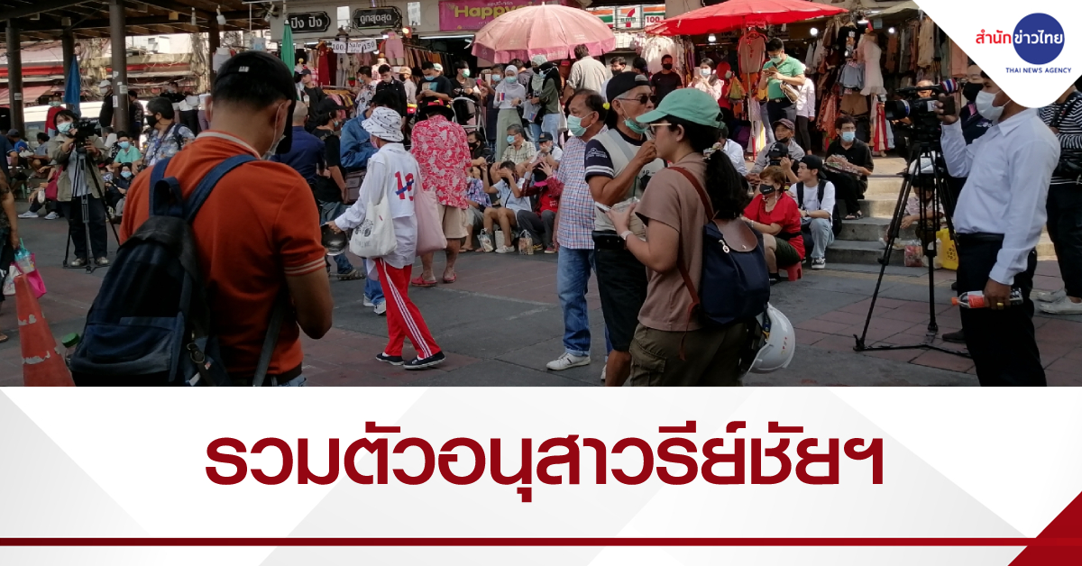 กรุงเทพฯ 28 ก.พ. – กลุ่มผู้ชุมนุมทยอยรวมตัวที่อนุสาวรีย์ชัยฯ เตรียมเดินเท้าไปชุมนุมเรียกร้องหน้ากรมทหารราบที่ 1 ถ.วิภาวดีฯ