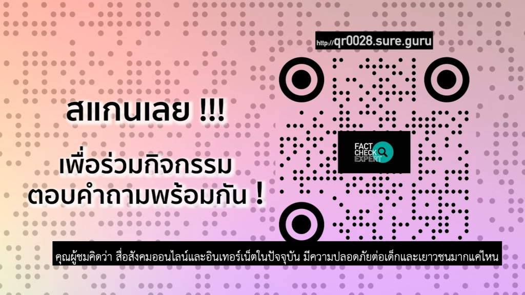 👉 เตรียมโทรศัพท์มือถือของคุณให้พร้อม แล้วร่วมเรียนรู้และตอบคำถามไปพร้อมๆ กัน ผ่านหน้าจอกับ FACT CHECK EXPERT ในบทเรียนที่ 28 “เทคนิคการเสริมสร้างทักษะการรู้เท่าทันสื่อให้เด็กและเยาวชน” โดยคุณพีรพล อนุตรโสตถิ์ จากศูนย์ชัวร์ก่อนแชร์