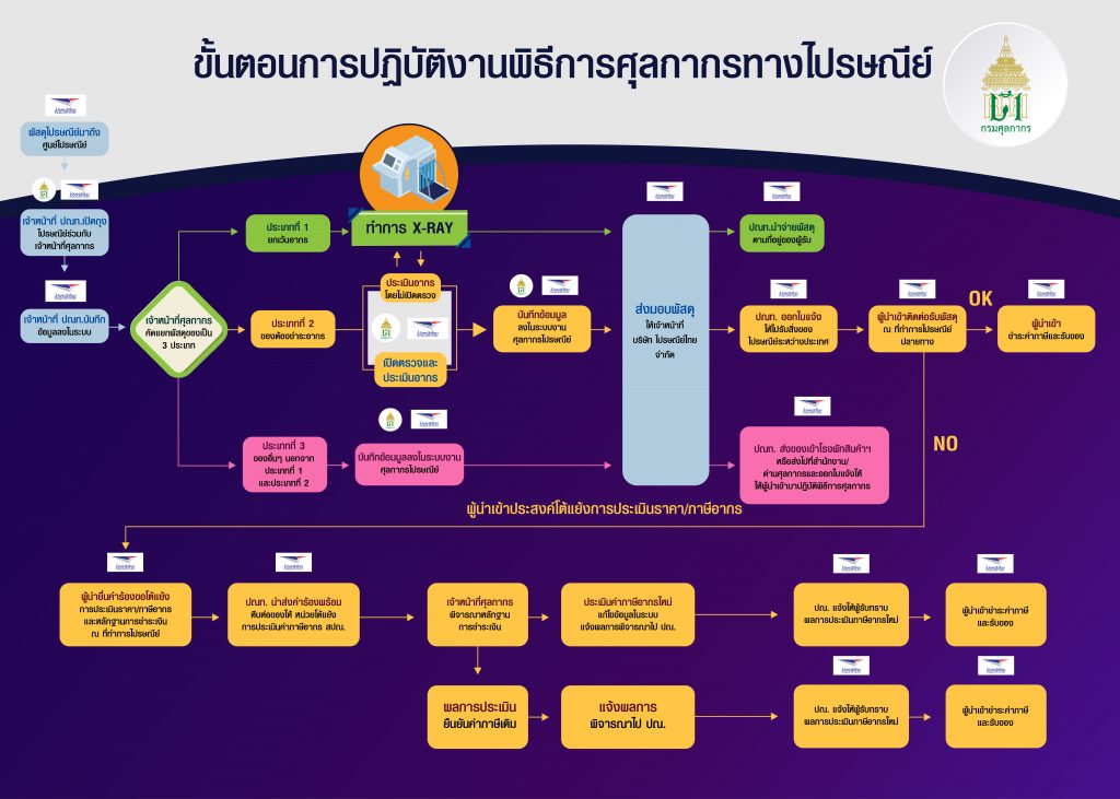 กรุงเทพฯ 22 มี.ค. – กรมศุลกากร ชี้แจงขั้นตอนการปฏิบัติงานพิธีการศุลกากรทางไปรษณีย์ระหว่างประเทศ