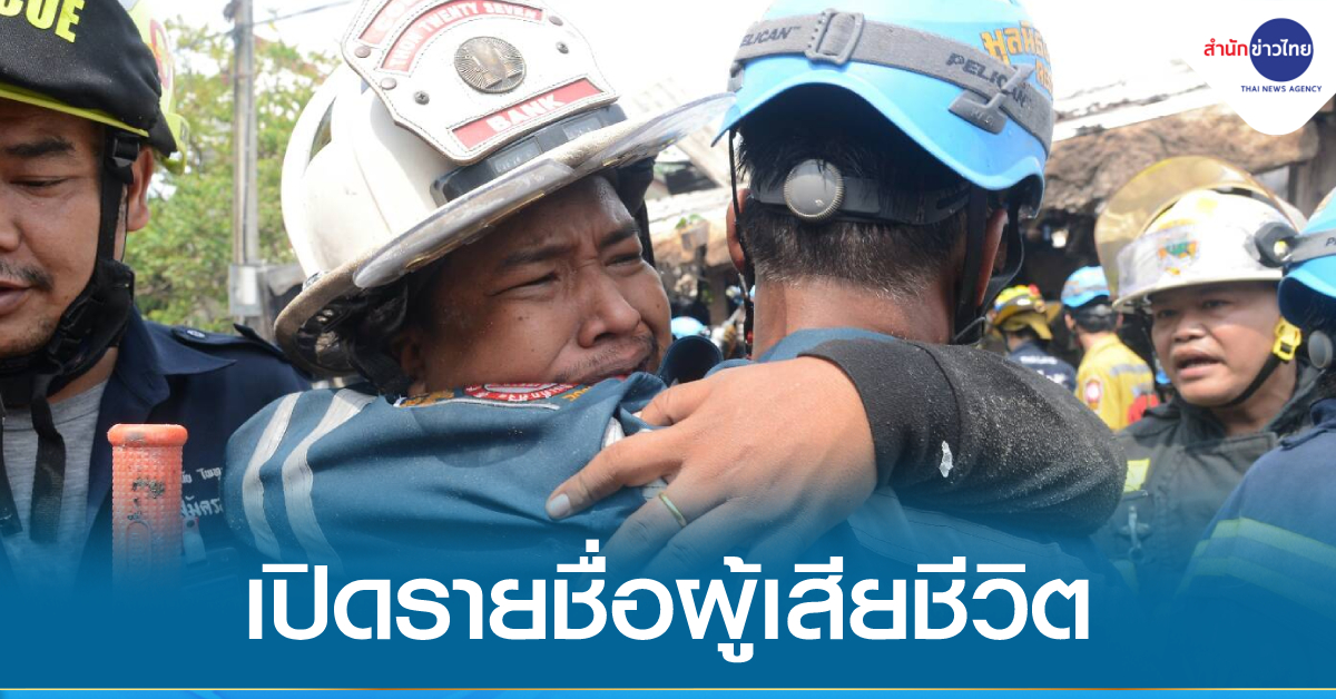 กรุงเทพฯ 3 เม.ย. – ผู้ว่าฯ กทม. ลงพื้นที่ตรวจสอบเหตุเพลิงไหม้บ้าน 3 ชั้นพังถล่ม หมู่บ้านกฤษดานคร 31 ย่านทวีวัฒนา พร้อมเปิดเผยรายชื่อผู้เสียชีวิตจากเหตุดังกล่าว