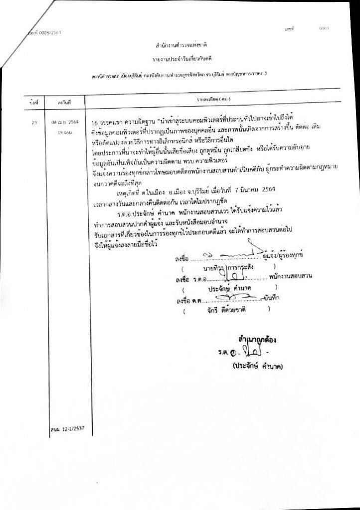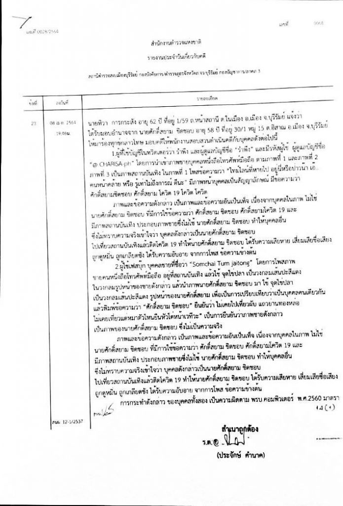 บุรีรัมย์ 8 เม.ย.- รมว.คมนาคม มอบอำนาจตัวแทนเข้าแจ้งความร้องทุกข์ดำเนินคดีผู้โพสต์โซเชียล 2 ราย โพสต์ภาพใส่ร้ายว่าไปเที่ยวสถานบันเทิงจนติดโควิด