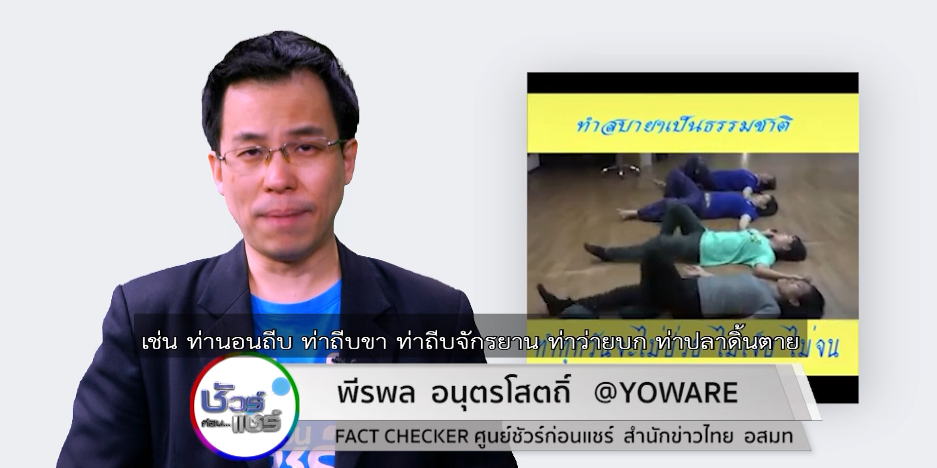 18 เม.ย. – บนสังคมออนไลน์ แชร์คลิปแนะนำ 9 ท่าพิชิตหมอนรองกระดูกทับเส้นประสาท แต่ข้อเท็จจริงเรื่องนี้เป็นอย่างไร ติดตามกับ คุณพีรพล อนุตรโสตถิ์ จากศูนย์ชัวร์ก่อนแชร์