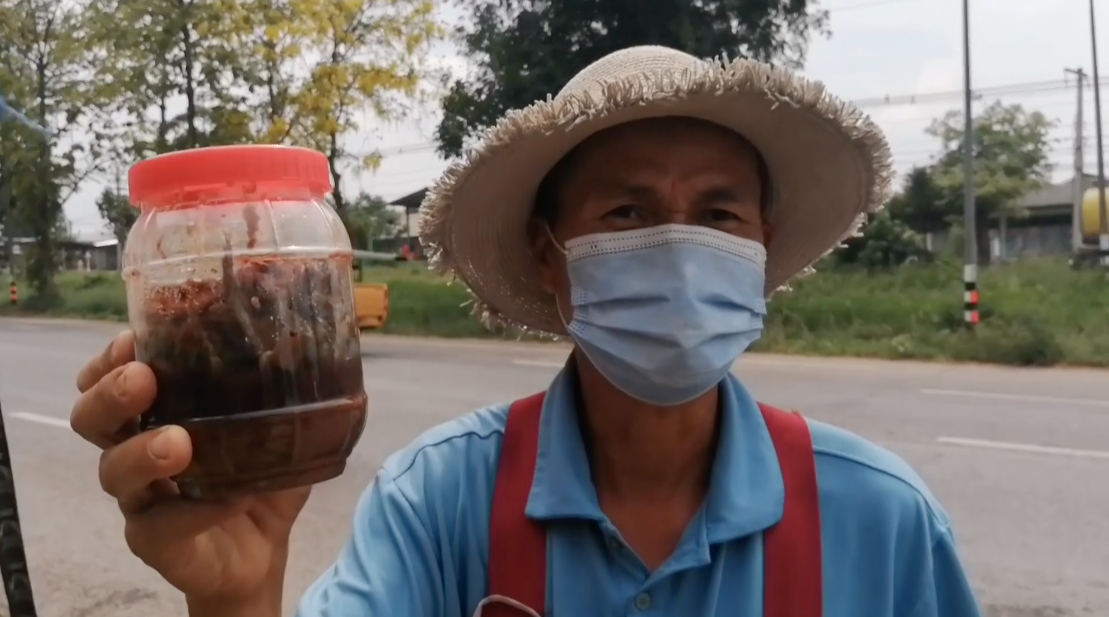 นายศิริพงษ์ แดงอุไร หรือลุงพงษ์ อายุ 53 ปี เจ้าของร้านขายอึ่งเล่าว่า ช่วงนี้ฝนตกชุกอย่างต่อเนื่อง ชาวบ้านพากันหาจับอึ่งรุ่นแรกที่มีอยู่ตามธรรมชาติมาขายจำนวนมาก และตรงกับช่วงเทศกาลสงกรานต์ ทำให้อึ่งขายดีเป็นพิเศษ จึงนำอึ่งมาขายบริเวณข้างทาง ตั้งแต่ 8.00 น.จนถึงช่วงค่ำ โดยขายทั้งอึ่งสดและอึ่งย่าง