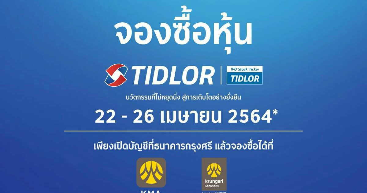 ธนาคารกรุงศรีอยุธยา จำกัด มหาชน เปิดรับจองซื้อหุ้นสามัญของบริษัท เงินติดล้อ จำกัด (มหาชน) หรือ TIDLOR ต่อประชาชนทั่วไปเป็นครั้งแรก (IPO) ตั้งแต่เวลา 9.00 น. ของวันที่ 22 เมษายน 2564 ถึง เวลา 16.00 น. ของวันที่ 26 เมษายน 2564 จองซื้อขั้นต่ำจำนวน 1,000 หุ้น ที่ราคาเสนอขายสุงสุดที่ 36.50 บาทต่อหุ้น หรือจำนวนเงินขั้นต่ำ 36,500 บาท และเพิ่มเป็นจำนวนทวีคูณของ 100 หุ้น (หรือจำนวนเงินทวีคูณของ 3,650 บาท) โดยสามารถจองผ่านช่องทางกรุงศรี โมบาย แอปพลิเคชัน (KMA) หรือ บริษัทหลักทรัพย์ กรุงศรี จำกัด (มหาชน) (KSS) ได้ง่ายและสะดวก. สามารถสร้างโปรไฟล์และทำแบบประเมินความเสี่ยงล่วงหน้าก่อนวันจองซื้อทางแอพ KMA ได้ตั้งแต่วันนี้เป็นต้นไป ศึกษารายละเอียด รวมทั้งขั้นตอนการจองซื้อหลักทรัพย์ ได้ที่ www.krungsri.com/th/ TIDLOR-IPO และลูกค้าของบริษัทหลักทรัพย์ กรุงศรี จำกัด (มหาชน) สามารถศึกษารายละเอียดเพิ่มเติมและเปิดบัญชีซื้อขายหลักทรัพย์ที่ https://www.krungsrisecurities.com