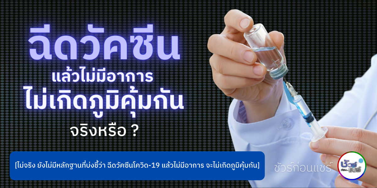 ศูนย์ชัวร์ก่อนแชร์ สำนักข่าวไทย อสมท ตรวจสอบกับ รศ.นพ.ธีระ วรธนารัตน์ ภาควิชาเวชศาสตร์ป้องกันและสังคม คณะแพทยศาสตร์ จุฬาลงกรณ์มหาวิทยาลัย ยืนยันว่า “ปัจจุบันยังไม่มีหลักฐานที่บ่งชี้ว่า ฉีดวัคซีนโควิด-19 แล้วไม่มีอาการ จะไม่เกิดภูมิคุ้มกันแต่อย่างใด”