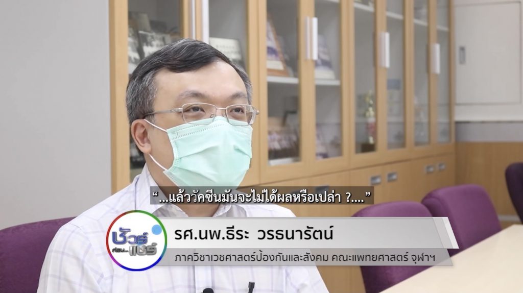 รศ.นพ.ธีระ ย้ำว่า ผู้ที่ฉีดวัคซีนโควิด – 19 แล้ว ก็ยังมีโอกาสที่จะติดเชื้อและแพร่เชื้อให้กับผู้อื่นได้ เพราะวัคซีนช่วยป้องกันการเจ็บปวด อาการป่วย และลดอัตราการเสียชีวิตเท่านั้น แต่ไม่สามารถป้องกันการติดเชื้อได้ เพราะฉะนั้น ถึงแม้ว่าจะเข้ารับการฉีดวัควัคซีนโควิด – 19 แล้ว ทุกคนก็ยังต้องปฎิบัติตามมาตรฐานการควบคุมป้องกันโรค จนกว่าจะมีการฉีดวัคซีนอย่างถึง และเกิดภูมิคุ้มกันหมู่ขึ้นในประเทศไทย