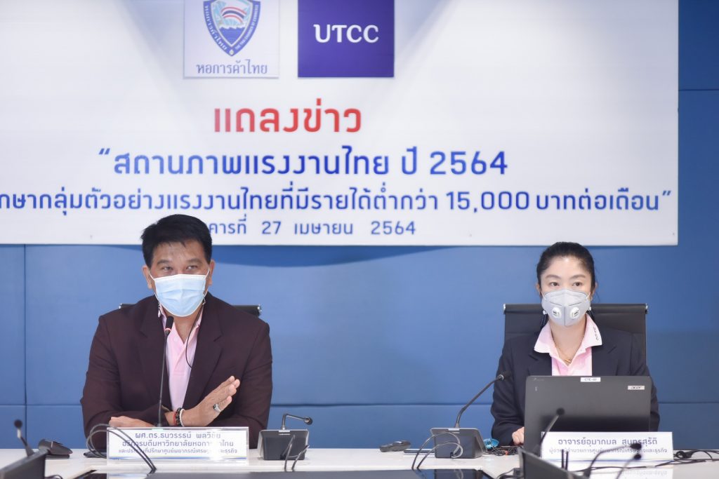 นายธนวรรธน์ พลวิชัย อธิการบดีมหาวิทยาลัยหอการค้าไทย และประธานที่ปรึกษาศูนย์พยากรณ์เศรษฐกิจและธุรกิจ มหาวิทยาลัยหอการค้าไทย เปิดเผยผลสำรวจสถานภาพแรงงานไทยปี 2564 สำหรับกลุ่มแรงงานที่มีรายได้ต่ำกว่า 15,000 บาทต่อเดือน จากผู้ใช้แรงงาน 1,256 ราย ระหว่างวันที่ 18-22 เมษายน 2564 พบว่า สัดส่วนร้อยละ 98.1 ของแรงงานไทย ระบุมีภาระหนี้สิน ถือว่าสูงสุดจากที่เก็บข้อมูลมา ซึ่งส่วนใหญ่เป็นหนี้จากหาเงินใช้จ่ายในชีวิตประจำวัน จ่ายหนี้เดิม จ่ายหนี้บัตรเครดิต จ่ายค่าการศึกษาและค่าอินเตอร์เพื่อการศึกษา และราคาสินค้าเพิ่มขึ้น โดยร้อยละ 45.5 ระบุมีรายได้เท่ารายจ่าย และร้อยละ 82 ระบุอัตรารายได้ไม่ได้เปลี่ยนแปลงมาหลายปีแล้ว ทำให้ ร้อยละ 85.1 เจอภาวะผิดนัดชำระหนี้ และร้อยละ 60 ระบุภาระหนี้กระทบต่อการใช้จ่ายต้องลดลง และไม่สามารถออมเงินได้ อีกทั้ง ร้อยละ 71.5 ระบุว่าสถานการณ์ตอนนี้มีปัญหารายได้ไม่พอใช้จ่ายแล้ว ทำให้แรงงานไทยที่มีรายได้ต่ำกว่า 15,000 บาท/เดือน มีหนี้ครัวเรือน 206,000 บาท เพิ่มขึ้นร้อยละ 29.56 แยกเป็นหนี้ในระบบร้อยละ 71 หนี้นอกระบบร้อยละ 29 จากปี 2562 ที่มียอดหนี้ 159,000 บาท ถือเป็นภาระหนี้สูงสุดจากเก็บสำรวจมา 12 ปี