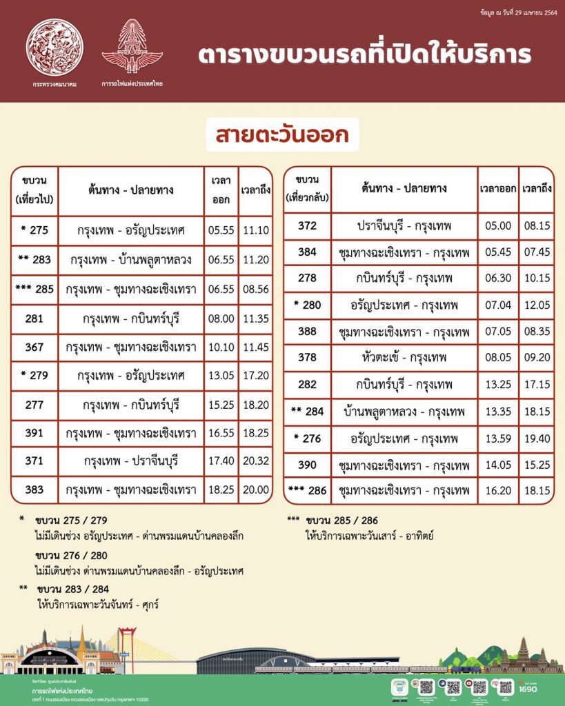 ขบวนรถธรรมดาที่ 275/276 กรุงเทพ – อรัญประเทศ – กรุงเทพ (ไม่มีเดินช่วง อรัญประเทศ – ด่านพรมแดนบ้านคลองลึก)