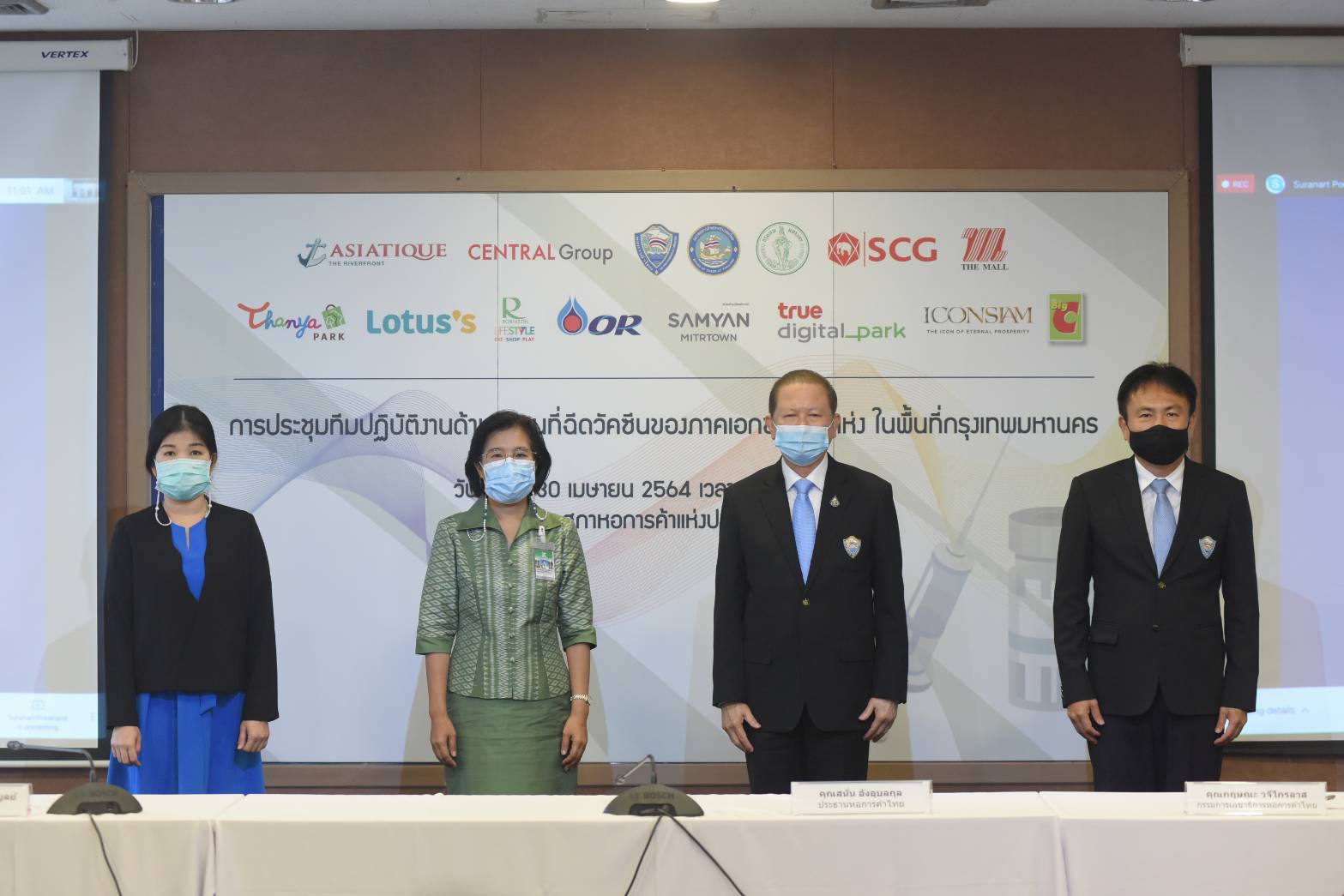ทั้งนี้ หอการค้าไทยได้จัดประชุมร่วมกับทีมปฏิบัติงานด้านสถานที่ฉีดวัคซีนของภาคเอกชน 14 แห่ง ในพื้นที่กรุงเทพมหานคร ที่ได้รับการคัดเลือกจากคณะอนุกรรมการการบริหารจัดการการให้วัคซีนป้องกันโรคติดเชื้อไวรัสโคโรนา 2019 (COVID-19) กรุงเทพมหานคร ครั้งที่ 7/2564 เมื่อวันที่ 28 เมษายน ที่ผ่านมา ซึ่งการประชุมครั้งนี้เพื่อซักซ้อมความเข้าใจและเตรียมความพร้อมสถานที่แต่ละแห่งในการเป็นหน่วยบริการฉีดวัคซีนนอกโรงพยาบาล ขั้นตอนในการฉีดวัคซีน บุคลากร และอุปกรณ์จำเป็น ที่จะดำเนินการตั้งแต่เดือนมิ.ย.-ธ.ค. โดยหอการค้าไทยได้เชิญสำนักอนามัยกรุงเทพมหานคร ร่วมให้ข้อมูล