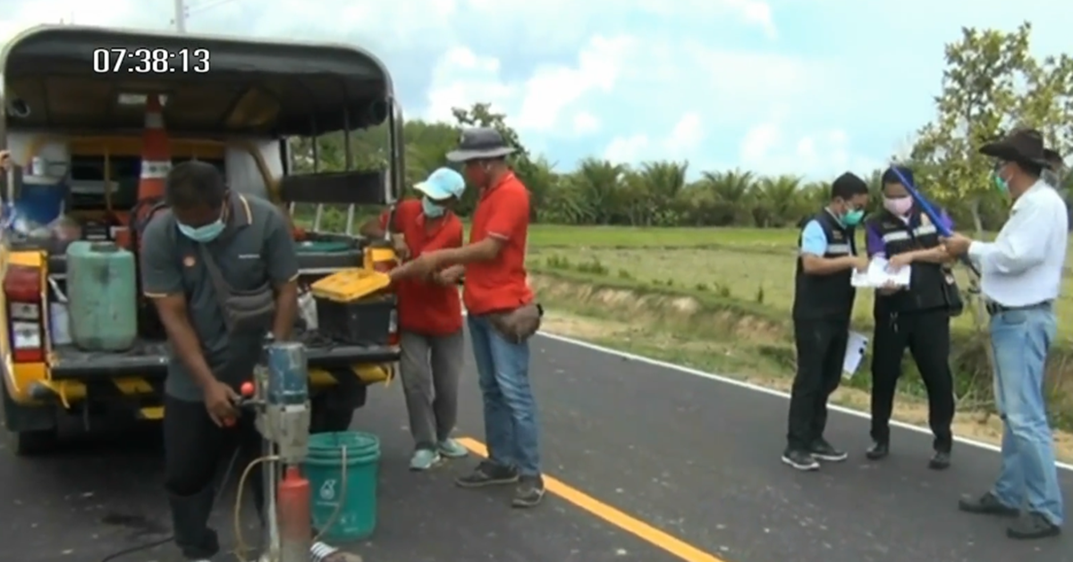นายยุทธนา วิมลเมือง เจ้าพนักงานป้องกันการทุจริตชำนาญการ ฝ่ายปฏิบัติการ ป.ป.ช.ตรัง พร้อมด้วยเจ้าหน้าที่แขวงทางหลวงตรัง ร่วมกับนายประกอบ ยนต์อยู่ หัวหน้าฝ่ายส่งน้ำและบำรุงรักษาที่ 1 โครงการชลประทานตรัง ได้เดินทางลงพื้นที่หมู่ 2 ต.นาข้าวเสีย อ.นาโยง เพื่อทำการเจาะถนนตรวจสอบว่าได้มาตรฐานหรือไม่