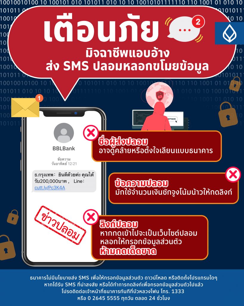 ทั้งนี้ ธนาคารกรุงเทพ ให้ความสำคัญกับความมั่นคงปลอดภัยในการพัฒนาเทคโนโลยีเพื่อตอบโจทย์ความต้องการและพฤติกรรมของลูกค้า โดยเฉพาะอย่างยิ่ง ธนาคารมีความห่วงใยในความปลอดภัยของลูกค้าทุกท่าน และขอให้ระมัดระวังในการทำธุรกรรมต่าง ๆ ทั้งนี้ ธนาคารขอเรียนให้ลูกค้าทุกท่านทราบว่า ธนาคารไม่มีนโยบายการส่งข้อความผ่านทาง SMS อีเมล LINE รวมถึงช่องทางออนไลน์และโซเชียลมีเดียต่าง ๆ โดยเฉพาะอย่างยิ่งเพื่อขอข้อมูลและเอกสารส่วนบุคคล หรือรหัสผ่านจากลูกค้าแต่อย่างใด