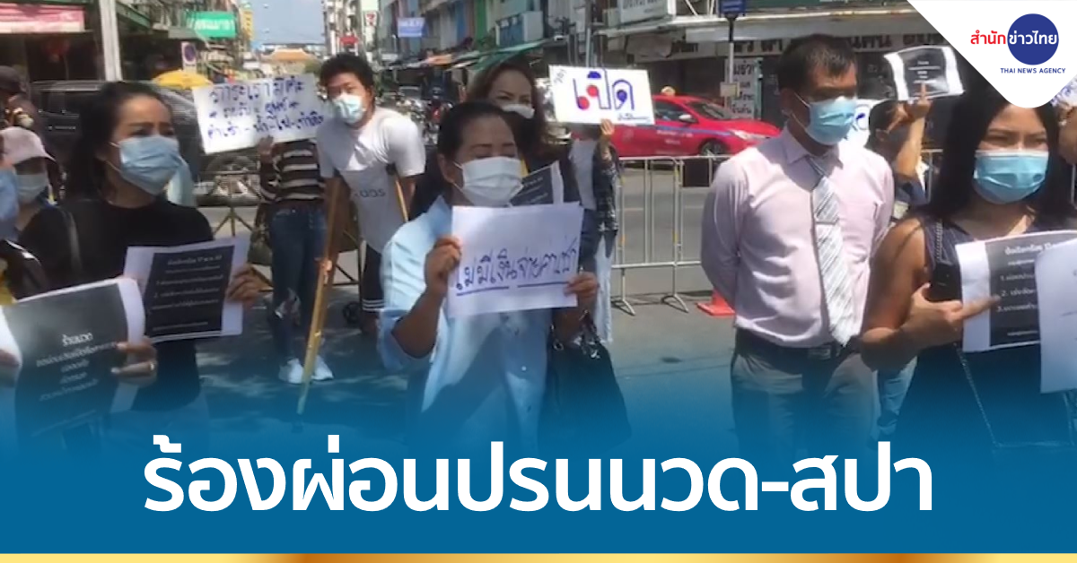 กทม. 17 พ.ค.-ตัวแทนผู้ประกอบการร้านนวด-สปา ยื่นหนังสือถึง กทม. ขอให้ทบทวนผ่อนปรนเปิดกิจการอย่างน้อยให้นวดเท้า หรือจุดที่ห่างจากใบหน้า หลังต้องแบกรับค่าใช้จ่ายเท่าเดิม